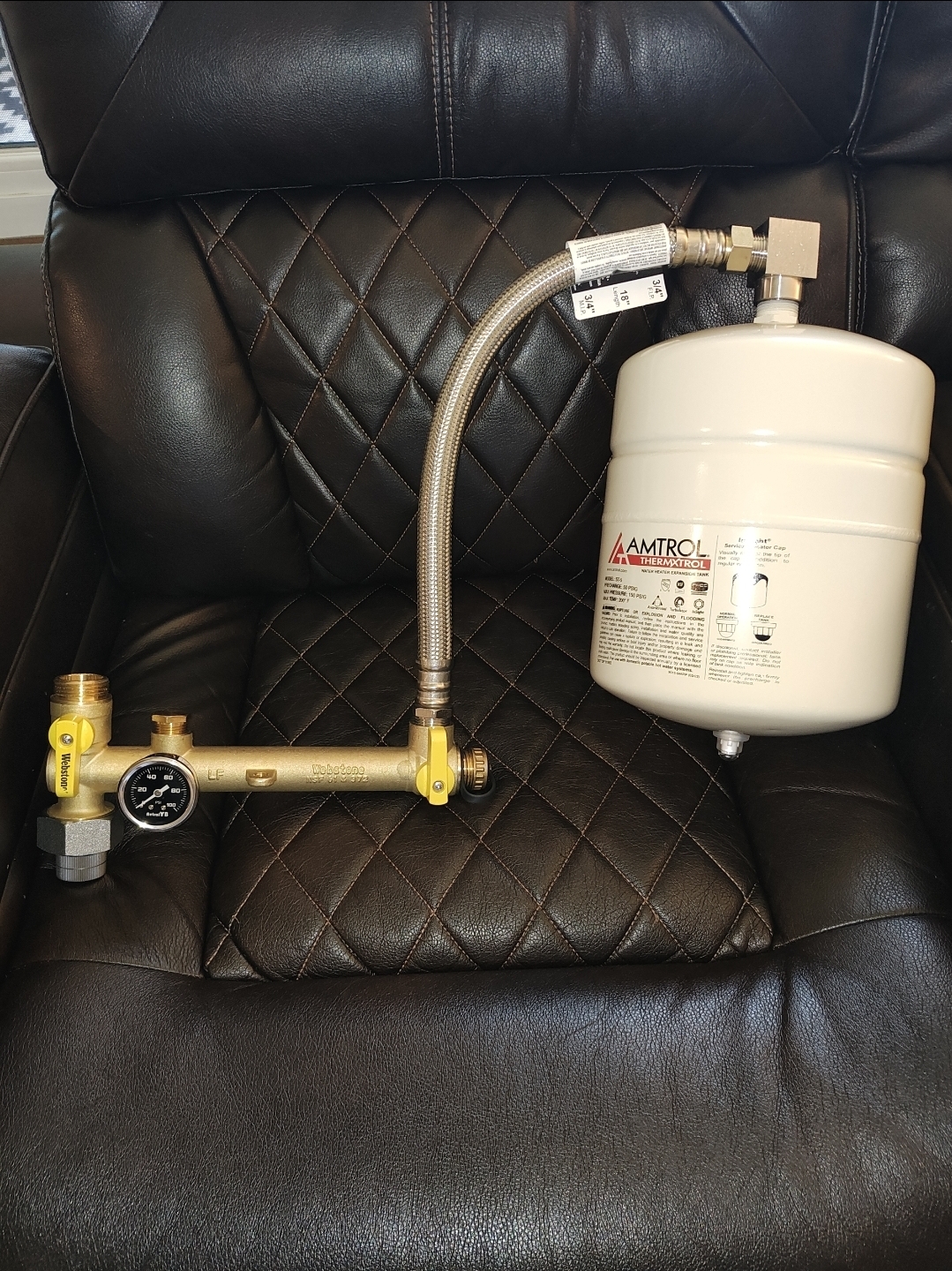 >>2973990it's a secondary safety device in case the t&p release fails, they've become required for code compliance in many areas. it's a bladder tank that absorbs pressure buildups.interestingly they don't need to be installed at the water heater location, they can be anywhere on the cold lines of the house and can also be supplemented with a pressure relief valve on exterior incoming water line.honestly just government justifying itself