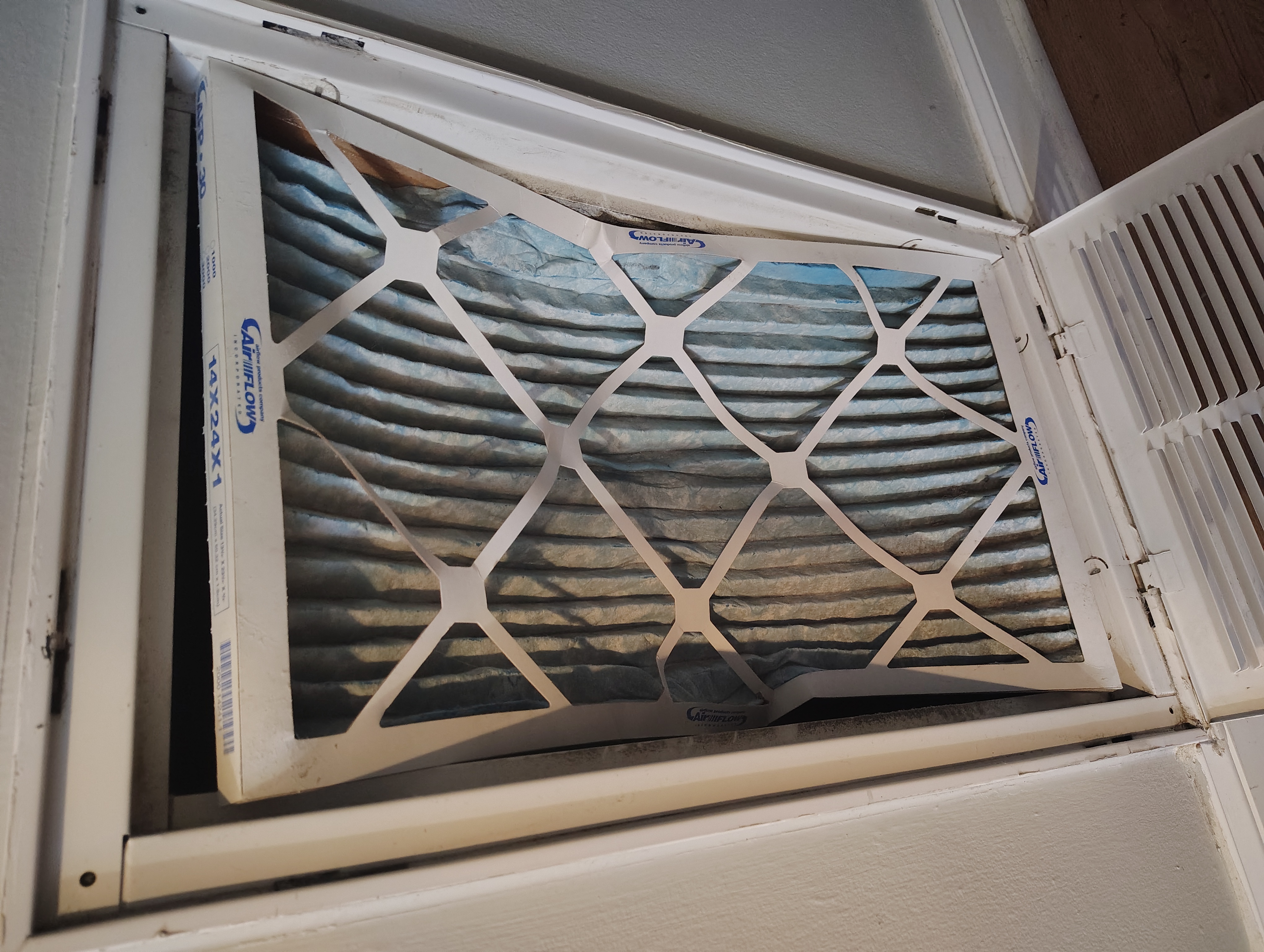 2. House and blower is too big and the return is too small. Make return bigger or add a second return, which is much harder to do. I have 2 returns and I had to enlarge one of them because it was noisy as fuck and the air circulation was unbalanced. Or switch to a lower MERV filter like fiberglass, which really isn't a good solution.
