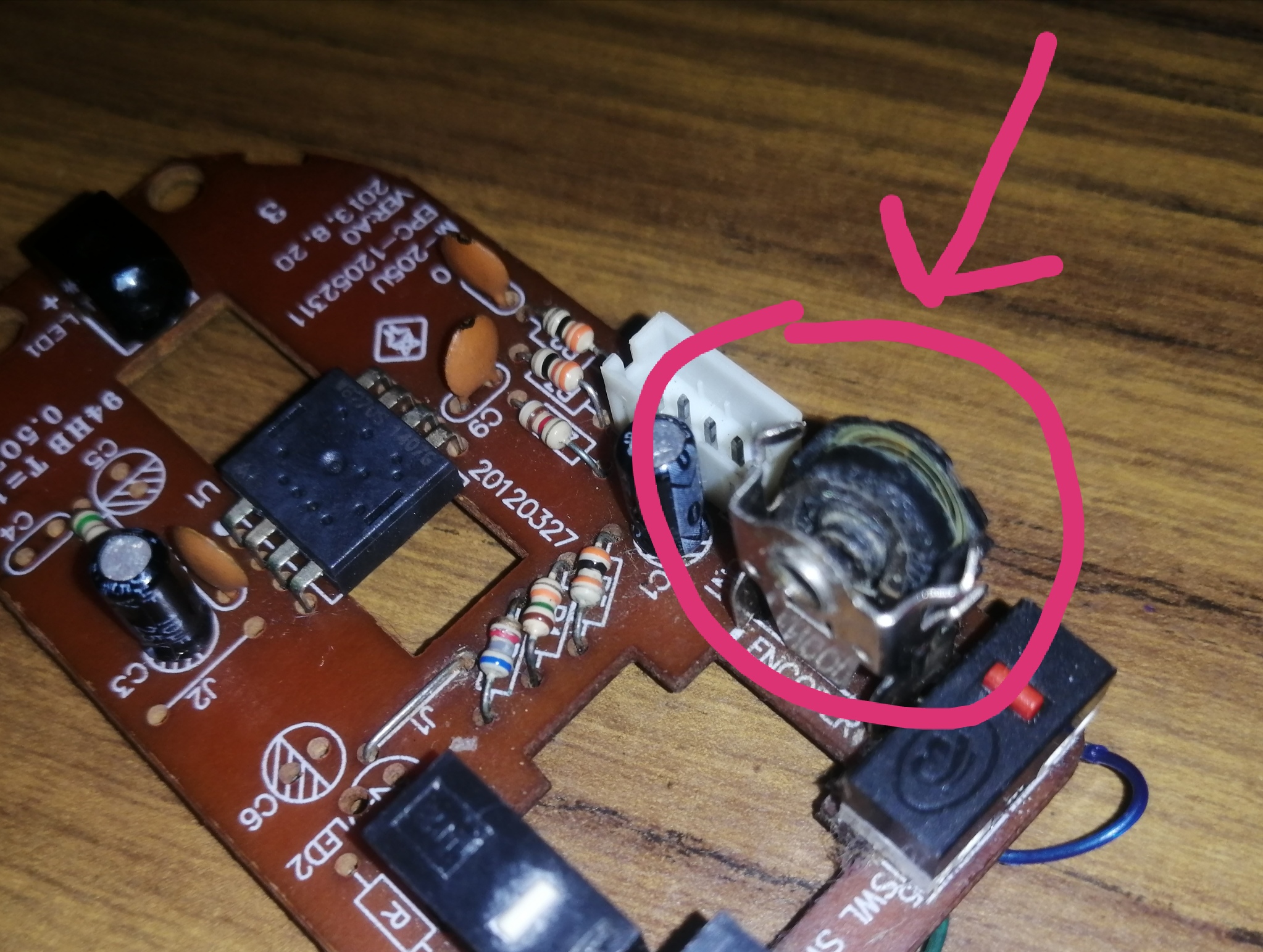 >>2974427>C9 and C10 look burnt.Pic related a picture from a few weeks ago when i was trying to fix the scroll. Those black tips were already there then and i didn't have these pointers issues back then.But if i remove the wires my left click will not be recognized by the mouse.I don't have compressed air to blow out the optical sensor, what could i use instead? >>2974428I don't think so, because when i did the acetone thing to fix the scroll i totally removed the encoder to work better.