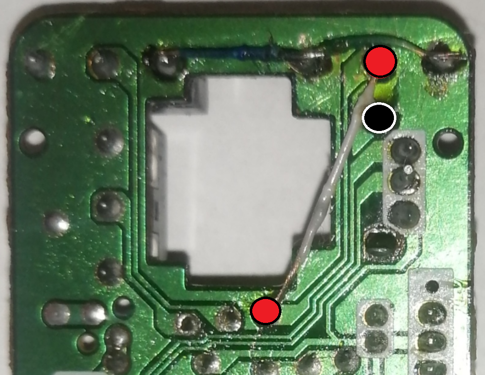 >>2974475>but sometimes the pointer will not respond after 2-3 seconds, this issue will happen 1 time for each 6 times I lift the mouse.Try a fresh battery first. If that doesn't help then reflow all the solder joints (there aren't that many) and fix the broken trace properly by scraping away the green solder mask around the solder points of the jumpered trace, fluxing, and flowing some new solder around them.