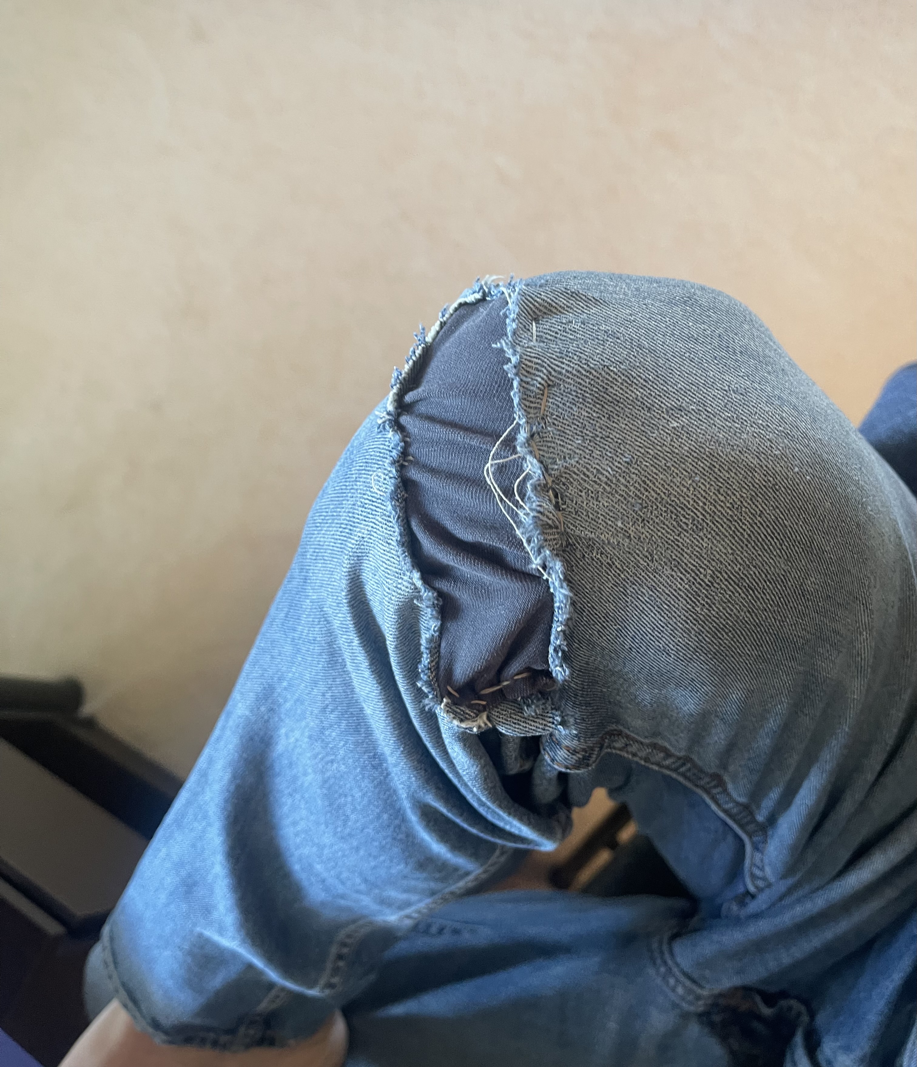 Finished patching my jeans by hand.Yes I know the patch is ugly.For anons who don’t know, you can either buy thread conditioner or use your own saliva while holding the thread to keep it from twisting as much and lubricate it.