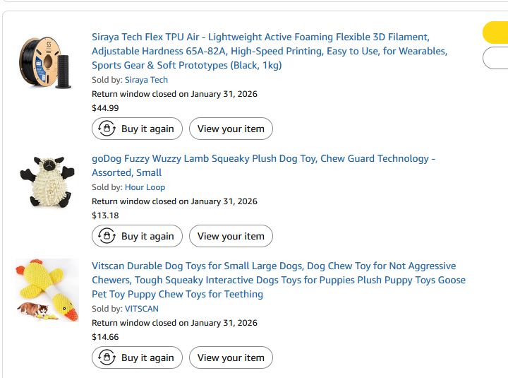 >>2980426It may not look like it, but I am exerting quite a bit of force in the epa-cf video. Here's an unscientific slowmo of 72D tpu (shiny) and the esun epa-cf. https://files.catbox.moe/w5731v.mp4 Can't be arsed to webm. CC3D's 72D is indeed a nylon tpu blend and it is amusing in its own right. what I find so amusing about the epacf is it's basically as strong interlayer as the 72D but stiff enough to be a "stiff" filament.Maybe over the weekend I might have time to both print a bin out of the 72d tpu along with some three point bending bars, and spend four or five hours looking for my dial indicator.pic unrel.>>2980552the printers that have been marketed print like absolute shit with hardly any appreciable benefits per current tests. don't think any companies have been gullible enough as of yet, and the consumer ones are far from affordable enough.to add to this, it appears the industry's focus for technical filaments is on support interfaces so dual nozzle/idex setups are becoming much more common. outside of that it's multicolor printing.