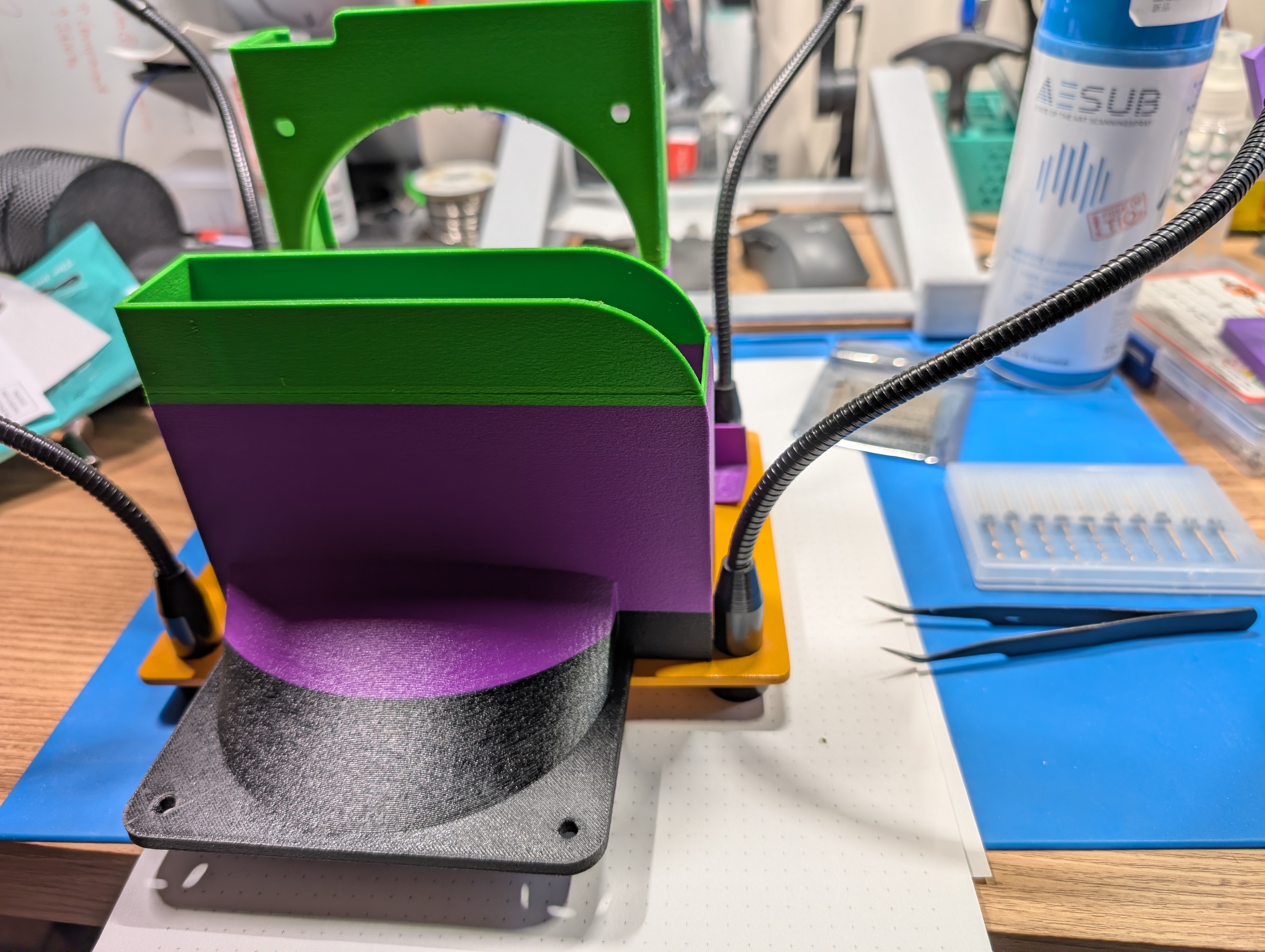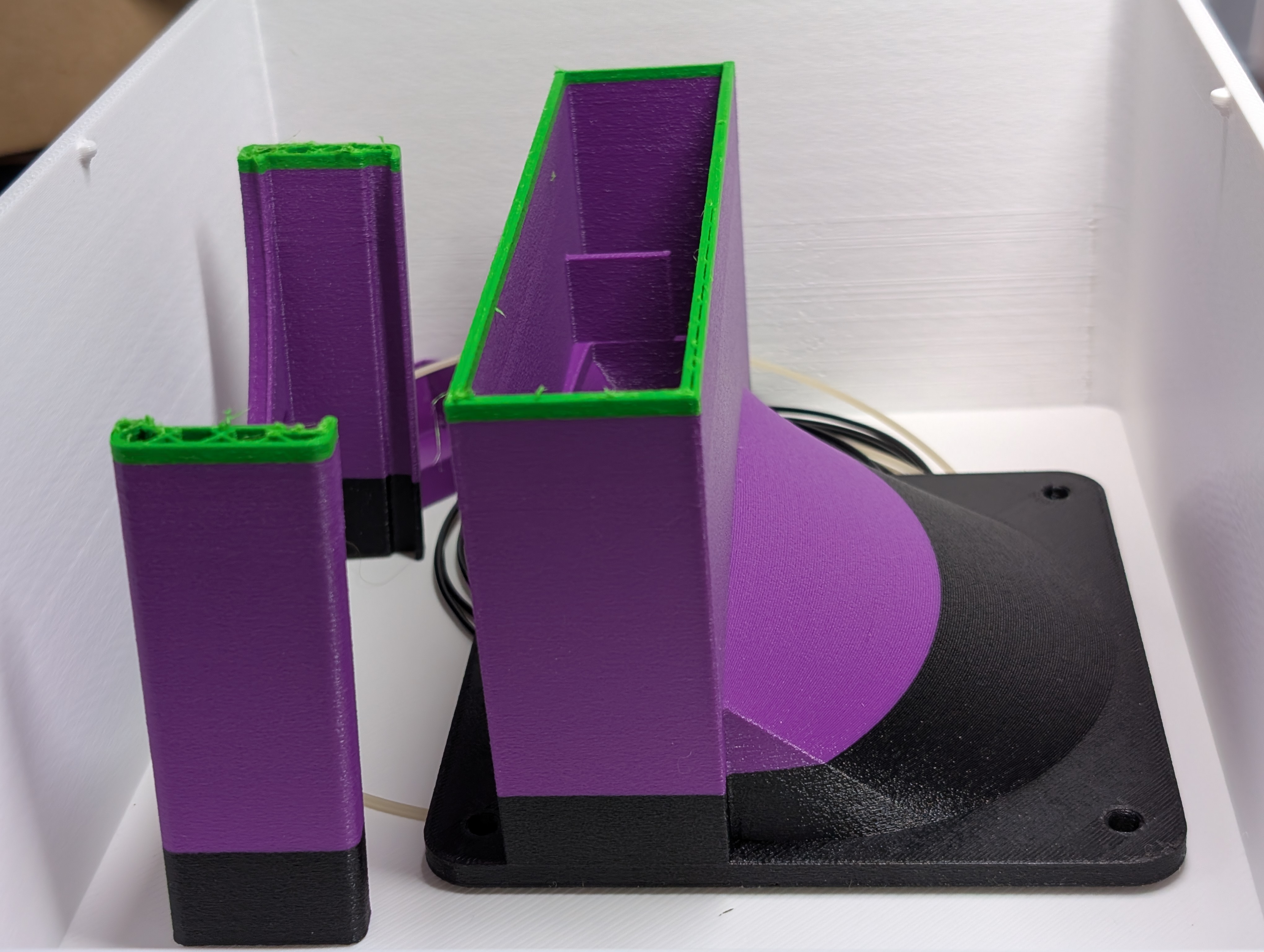 >>2980951>>It's a bit weird the consumer side hasn't catched up, or rather stagnated since summer in general.Things like the Sunlu E2 are pushing the boundaries of temperature, I'm tempted to get one since I get a staff discount where I work. But the lack of controllable vents, or any humidity feedback really, is definitely not optimal.Bambu only somewhat recently made a printer with a controllable vent for printing PLA with the door closed, I expect the same idea will trickle down to filament driers sooner or later.The iDryer seems to be an unusually obscure project for what it claims to do, for much cheaper than an E2, possibly even cheaper than a standard good drier like the Space Pi. Though I have my doubts about whether that fan will last at the 80C+ temperatures it's going to be immersed in, and the fully printed case isn't the most robust design for something that gets that hot. I'd probably buy some Sunlu ABS-FR if I was going to make that project, but I think it would be even smarter to make a sheet metal case so I wouldn't have to worry about it softening. Maybe a double-layered case with insulation in the gap to save power for multi-day drying, that aircrete I saw NightHawkInLight make seems like a suitable material.I'd also like to see someone rigorously test the iDryer, especially for hot-spots, but also just for performance vs a passively ventilated drier.