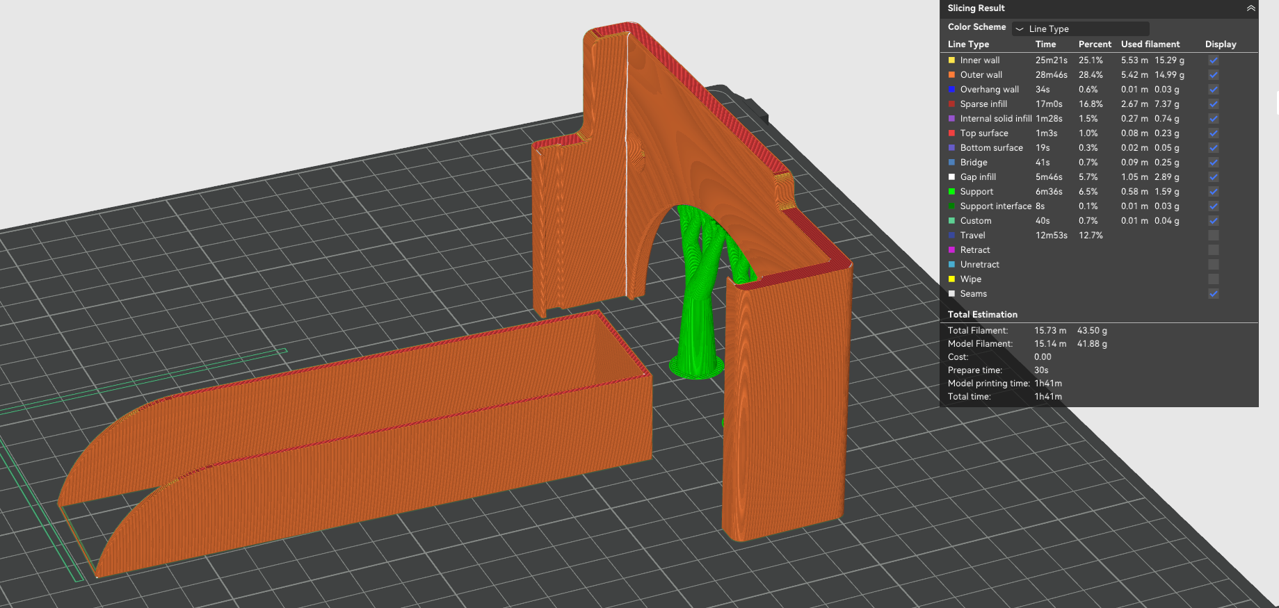 >>2980908if it's your model, you could design it directly with support in the file.Behold! my mighty paint skills.>red is your arc>green is supportYou should be able to bridge 4mm easily. And then you can put your arch support on your support bridge.This is the easiest way to save on filament, while still printing with support.