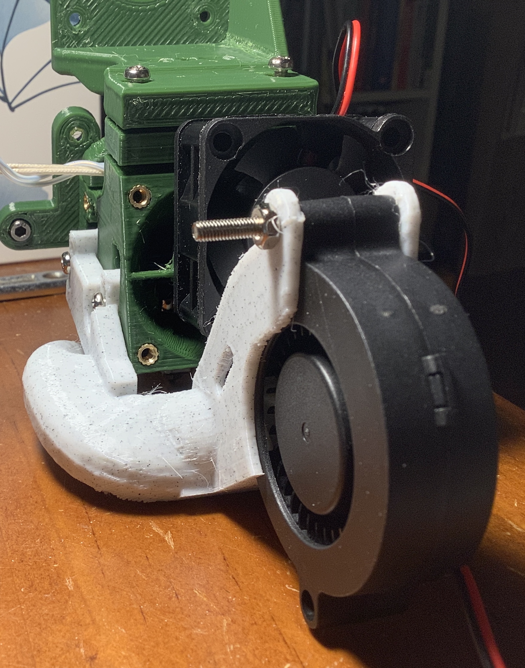 Ok I redesigned my direct extruder mount to use the part cooling ducts from the HeroMe project, because my part cooling design was shit but I'm not too fond of the HeroMe system's mounting of the heat-sink. The duct itself is held on by a 20x6x2mm rare earth magnet on each side, with one inset and the other protruding to make what should be a decently locking mount. I kinda still want to add the option for a screw or two to lock it on, but I can't find a good place to put that sort of thing.>>2984077>its 40 c outside here in summerOh ok you live in the fifth circle of hell, carry on then.>>2984091I think there's a compromise between the dogshit of PETG and the horseshit of trying to print ABS by roasting your mainboard and PSU by putting a cardboard box over a bedslinger. Different strokes.