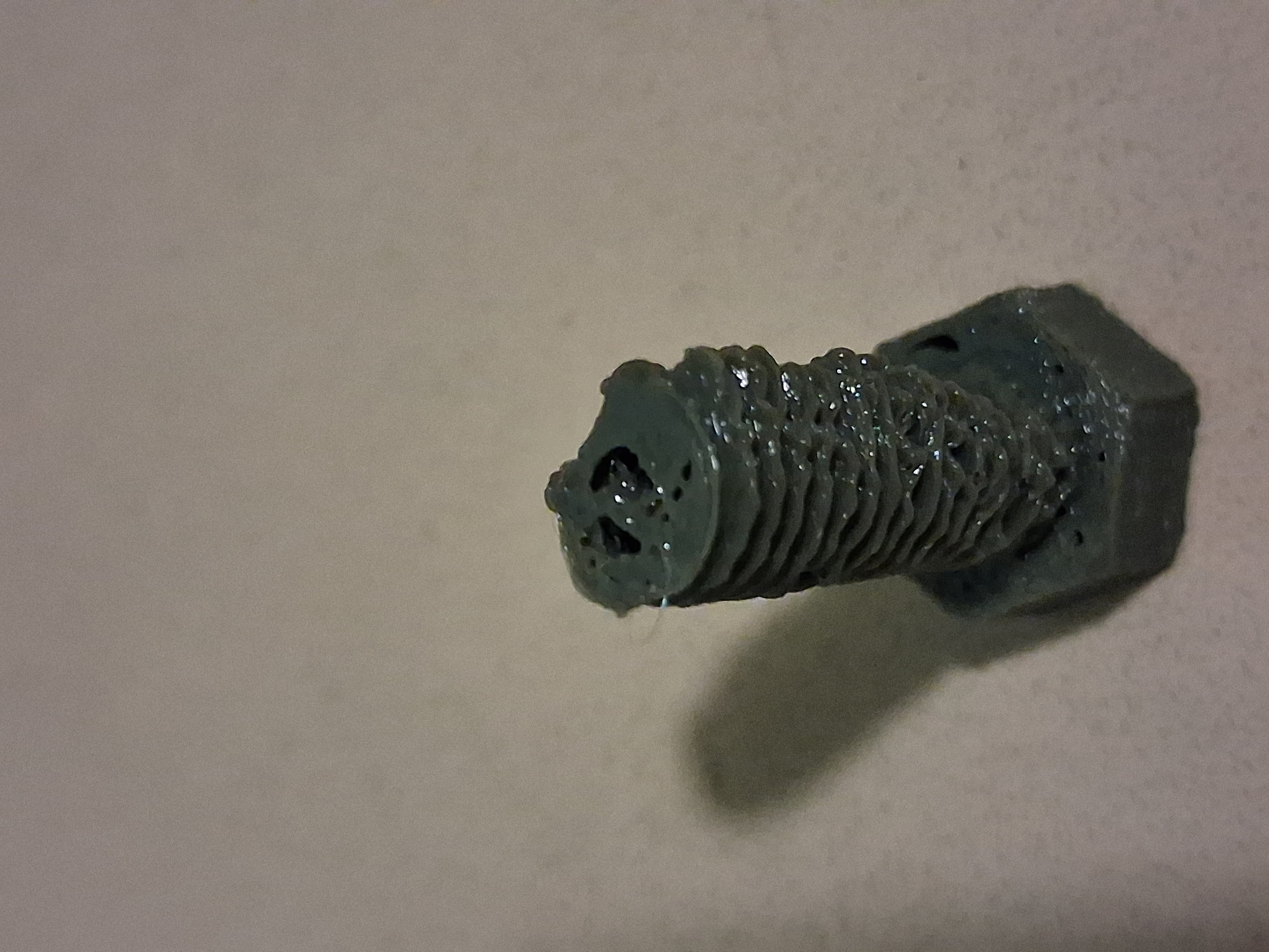I'm trying to print an M10 bolt (never mind why) and it's really not going well.Is this seam placement or something?>PETG>print temp 250c>bed temp 80c>print speed 100mm/s>retraction on>Z hop onLayer height 0.11mm