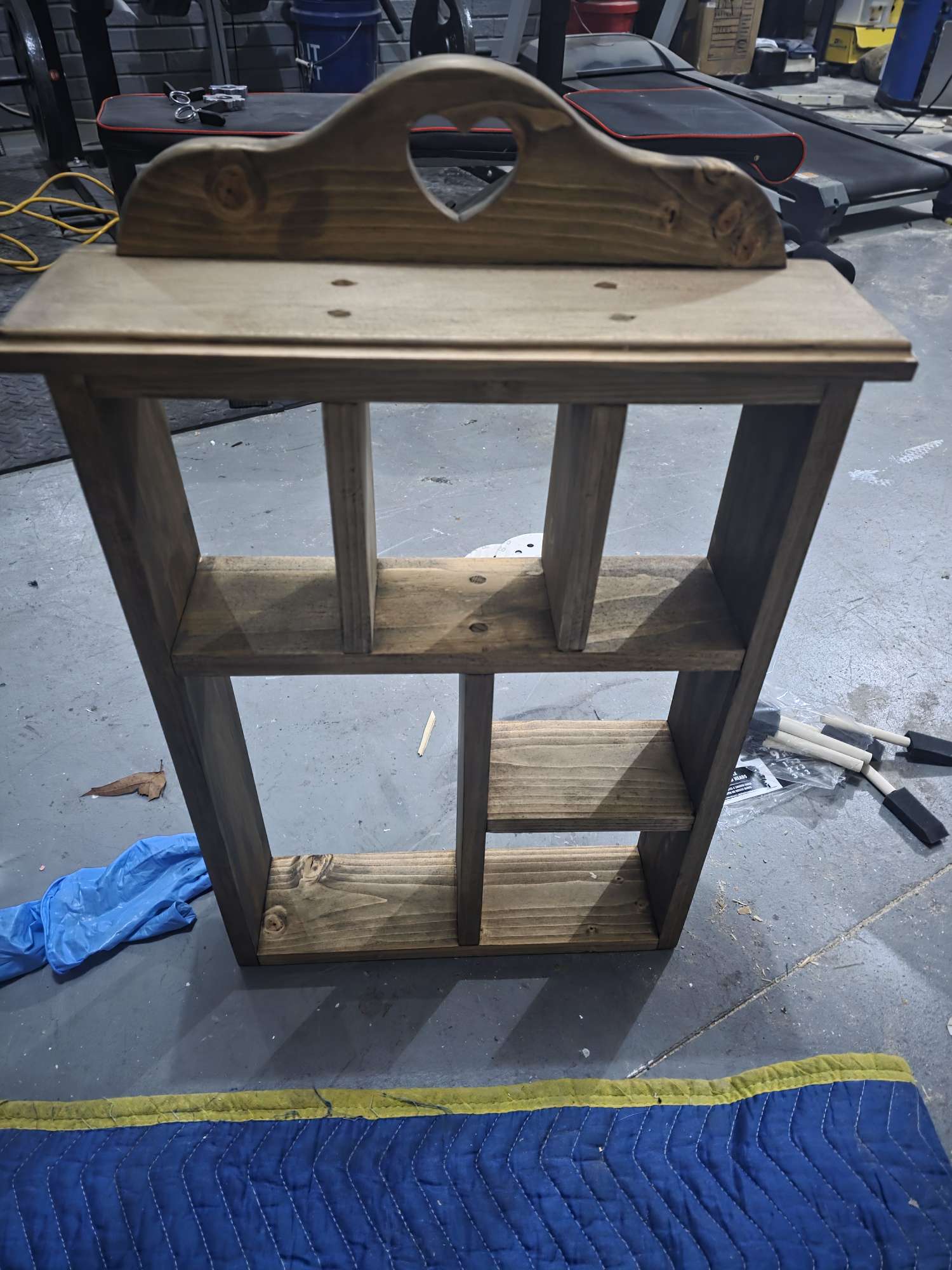 First coat of stain on, but as I feared the plywood isn't holding up with the grain direction that way, the top veneer is chipping every time I look at it funny. I think I'm gonna have to make another one of these out of solid wood, at least for the top layer. I wish I had access to a CNC router so I could just carve the whole thing out of a solid block.
