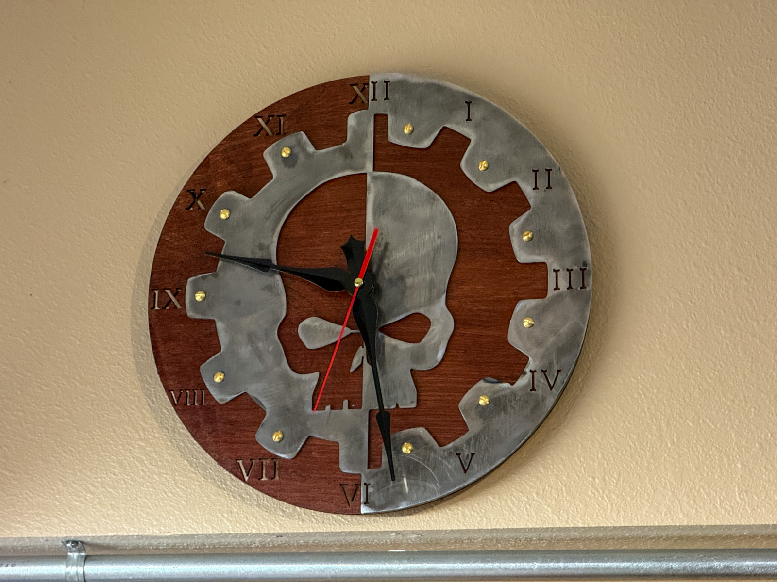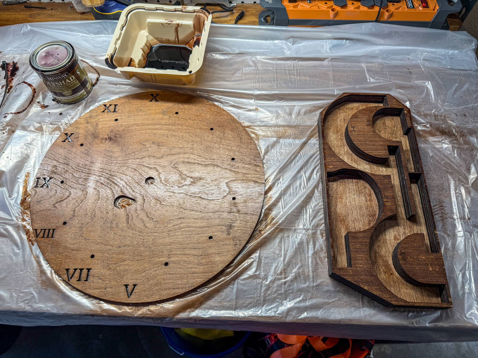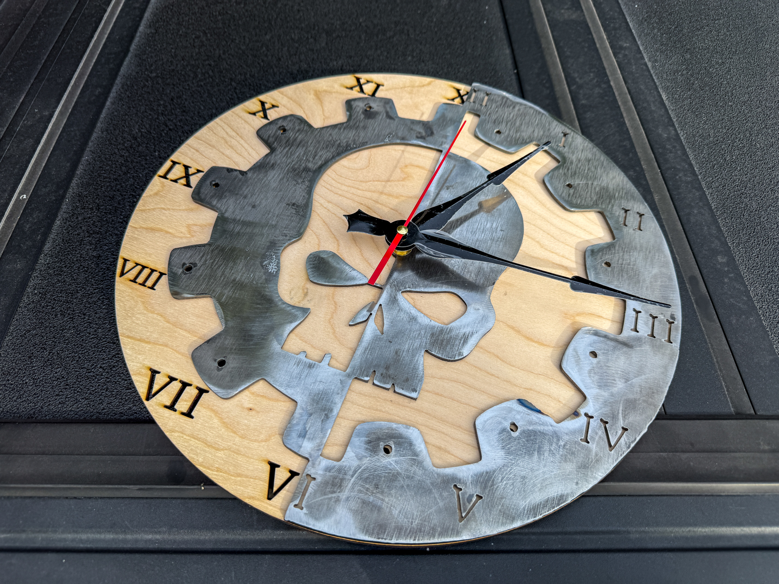 >>2981299And the clock, which will actually end up somewhere in the school building, I just hung it temporarily for the pic. Looks really good in person even with the iffy finishing, I think I may have done the second coat a little too early and some tiny bits of steel wool (used as directed on the can) got stuck in the first layer.