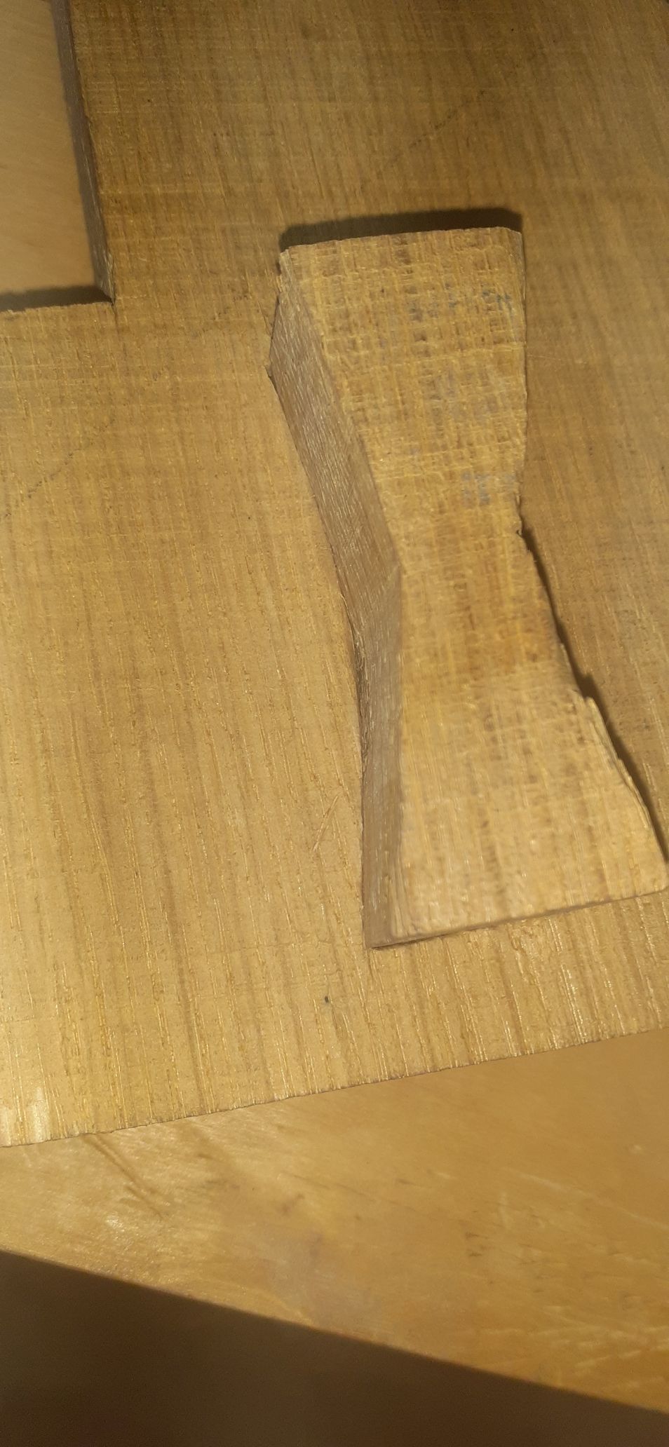 i tried making a bow tie as practice, used a piece of oak and picrel is the result. i think my chisel is relatively sharp, not like super folded milion times sharp, but sharp enough. if i go "with grain" i get small bitts falliing off. if i go from the top i basically either not grap the wood at all (the chisel slides on the surface), or i get particles fallig off or i tear out larger chunks on accident. thiss is with pushing by hand, using a small hammer etc.if i want to put this into a piece of wood, i'd have to chisel out a place for it from the top, and i'd probablt get the same exact result instead of clean edges and then it'ss game over cause i can't just start over. what am i doing wrong here?