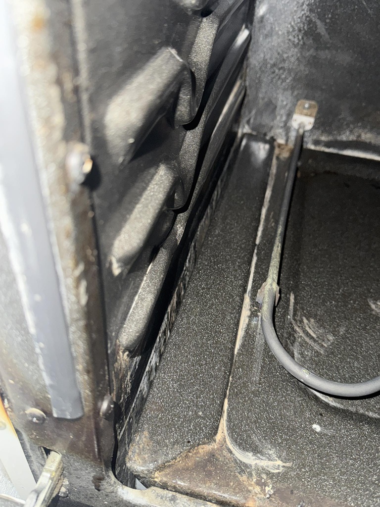 Staying at a place currently with an old ass oven and stove. The oven is made of separate panels which I've never seen before, instead of the one piece molded oven I'm used to. Idk what the previous person tried to clean it with but its white and chalky and dripped down between the walls and bottom. I don't know how to access it to clean it but it reeks like chemicals when I turn the oven on. What do? I can see screws that look like they only hold on the outer white shell of the unit and the actual components of the oven are riveted together