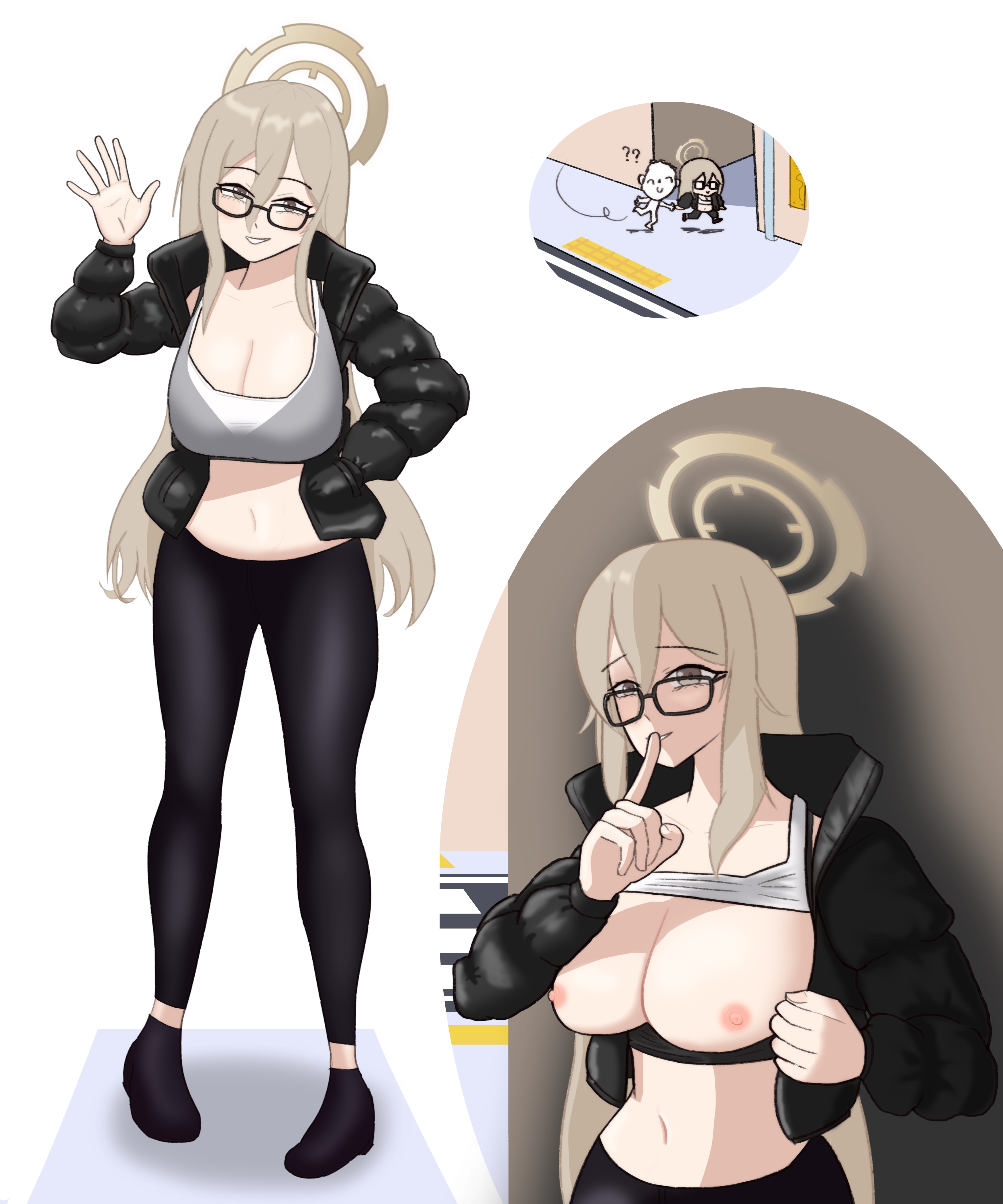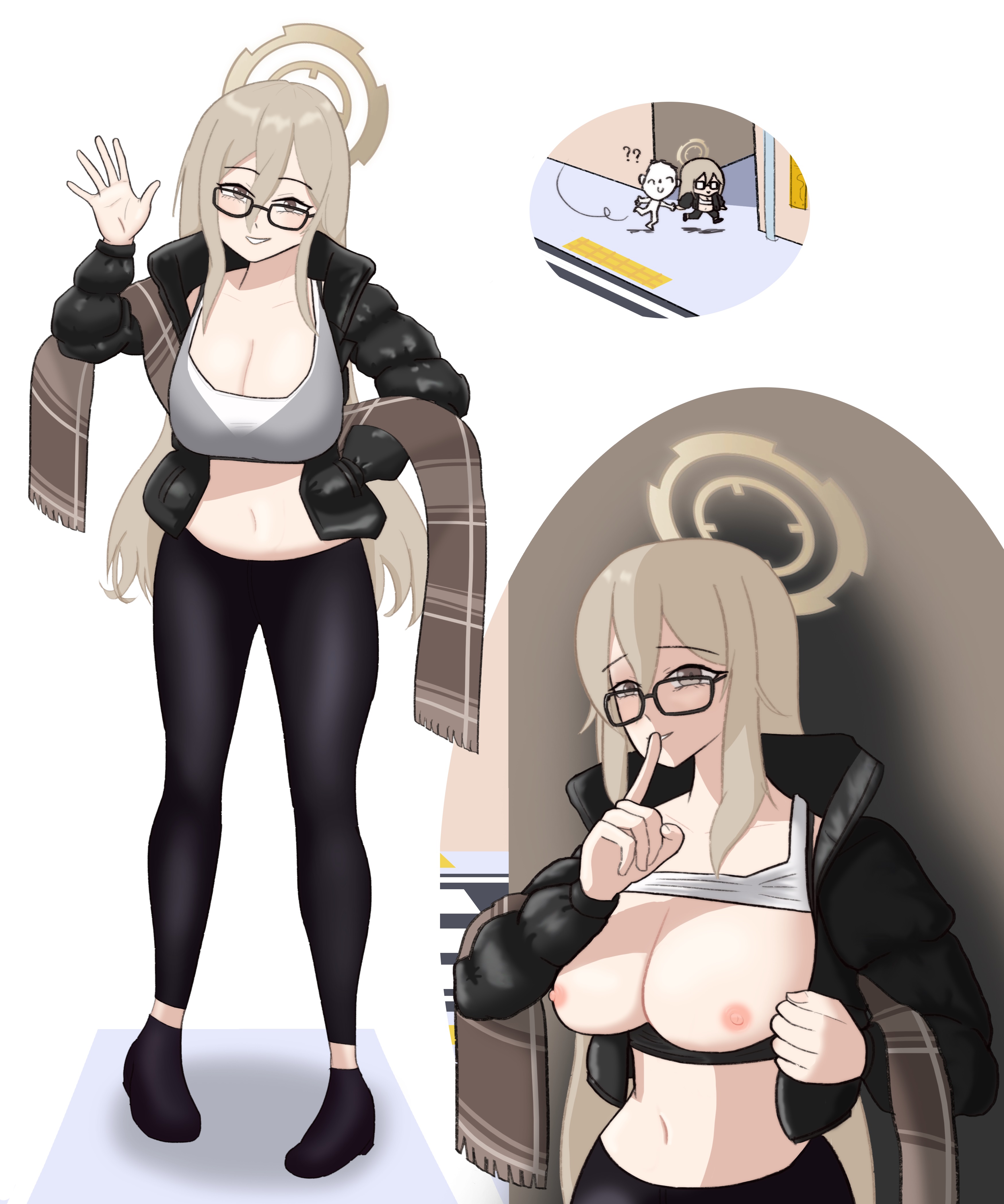 Requesting this outfit worn on Ade (Nikke) / Akane (Blue Archive). Also a variant of her flashing her tits.