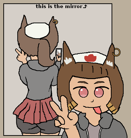 >>2963641Request a drawing of Taihou from Azur Lane wearing a long T-shirt that says "Addicted to sucking my own juicy tits" with a heart at the end of the phrase, highlighting her body and wearing black thigh-high stockings while standing in front of a mirror (only the reflection and frame visible), looking at herself provocatively with heart-shaped pupils and a flushed face. It’s not a selfie; she’s gazing at herself in the mirror.