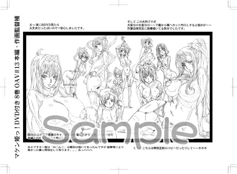 >>3004855Would be very interested in finding the original of this. I tried searching around for a while but couldn't find anything. Do you have any other images of that product or do you know what the name of it might be?On the left it says マケン姫っ! DVD 付き8巻 OAV#13 本編・作画監督補 which refers to some main animation assistant director or a storyboard assistant but I haven't been able to figure out who that is supposed to be exactly. There are pretty many people listed on MAL and other sites as assistant directors etc. That's pretty much the only thing I have to go on as a reverse image search didn't have any matches and the other texts in the image just describe the assistant's thoughts about the image or at least that's what I got with OCR and machine translation.