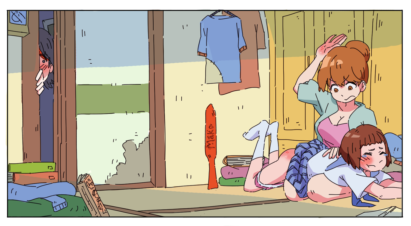 "Father punishes both wife and daughter at the same time" is something I wish was depicted more often. It asserts the man as the head of the family. Plus a girl having to watch her mom get it next while she rubs her sore bottom is pretty hot.