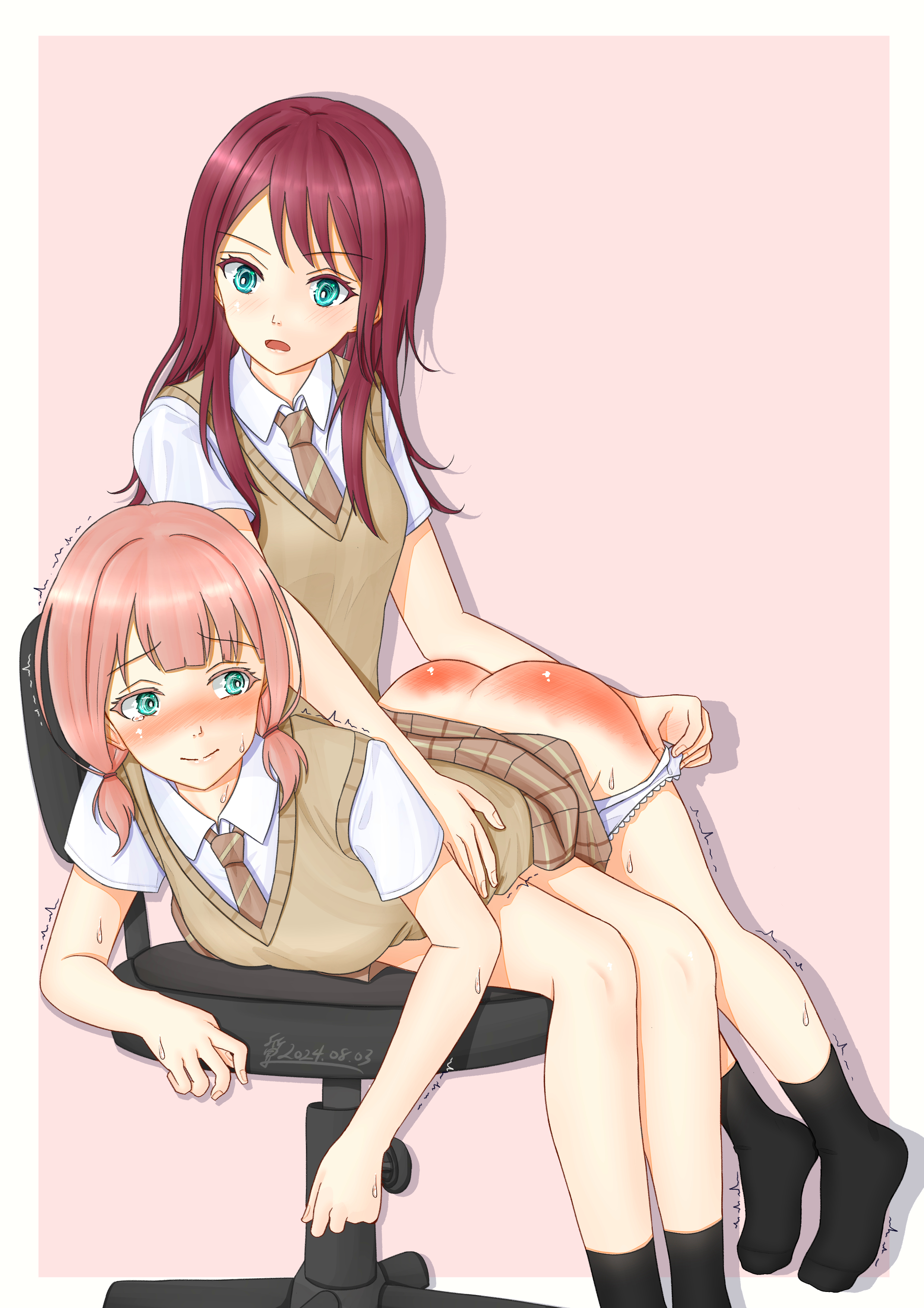 >>3012607My preference is when the spanker is a person who's either close enough to be family or filling the parental role. (Maid, teacher, adoptive family, older sibling etc.) It creates a wider potential range of punishment reasons.