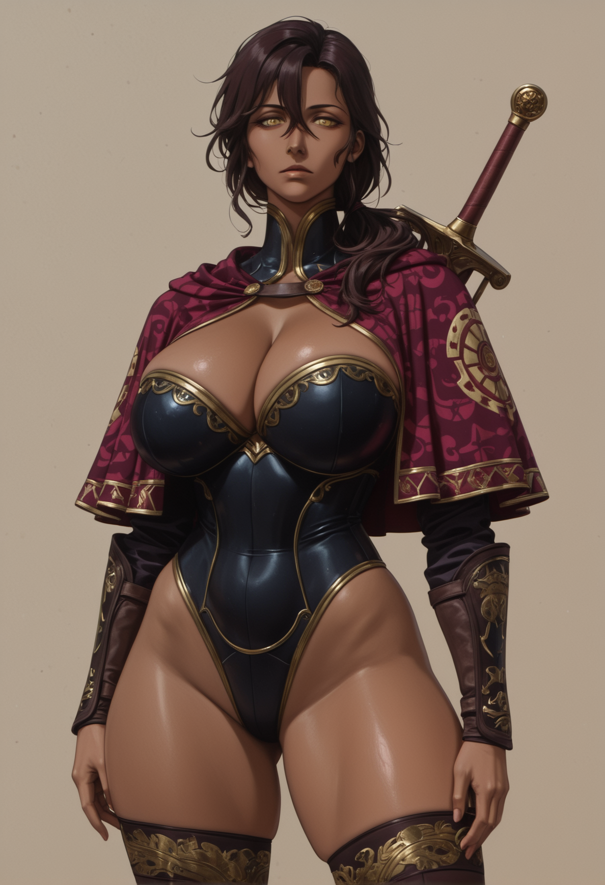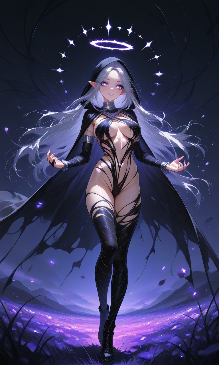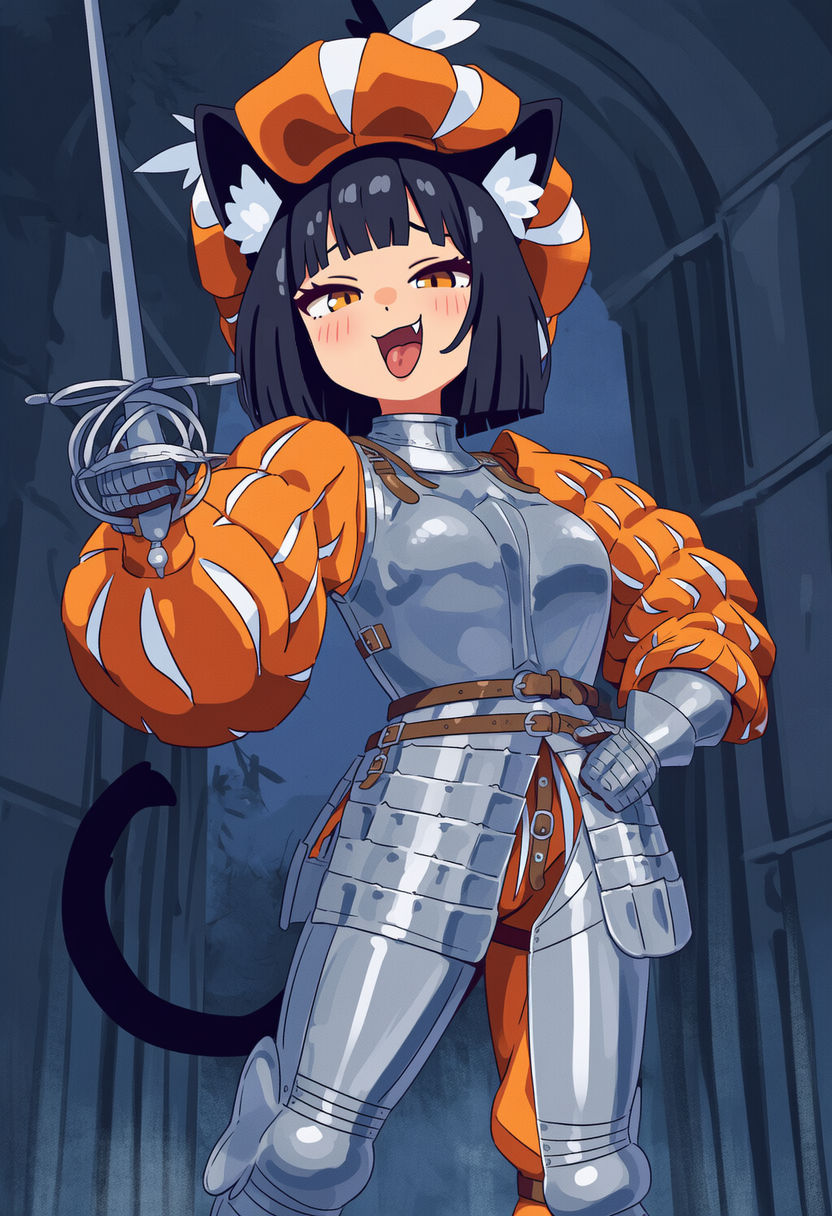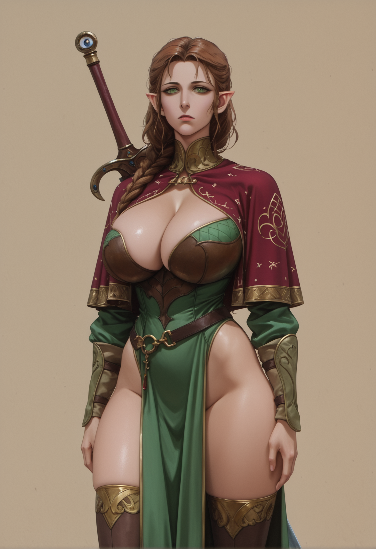 Thanks! I'll take a look at that checkpoint, but even just the prompts were informative (it never occurred to me to use "capelet", but really the color choice was more meaningful). I did take that phrase directly, as well as swapping "capelet" out with my usual "cloak" (I still prefer cloaks, but her posture with the spear was less aggressive and I specifically avoided a CN for this). I'm sure the checkpoint would make a radically difference, but it was still an interesting experiment by itself.