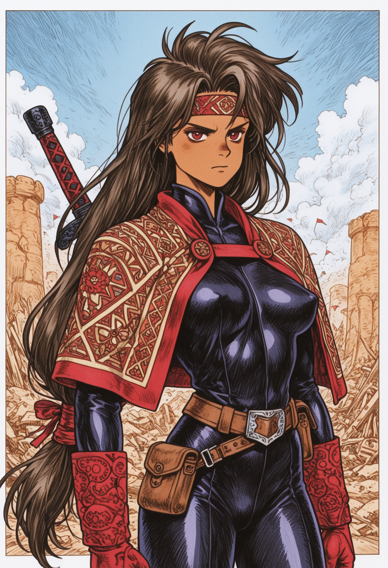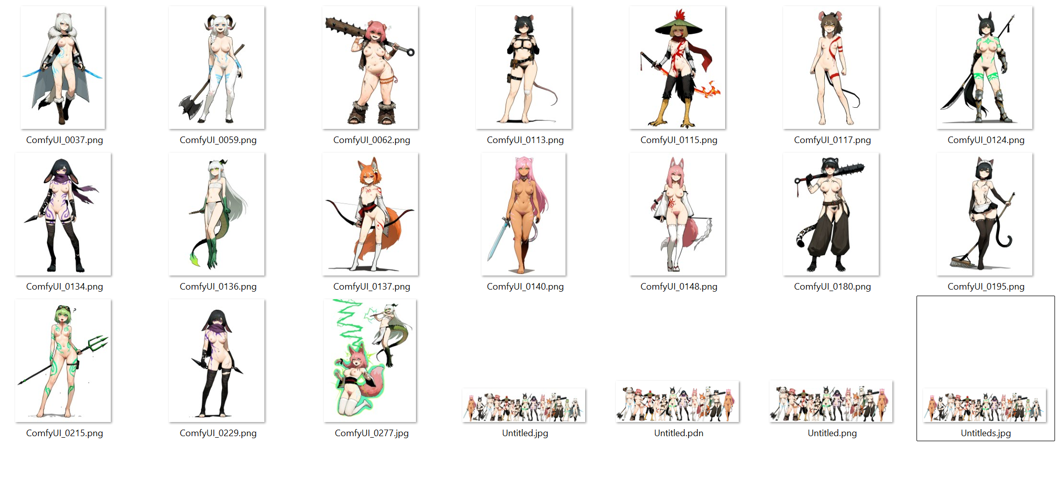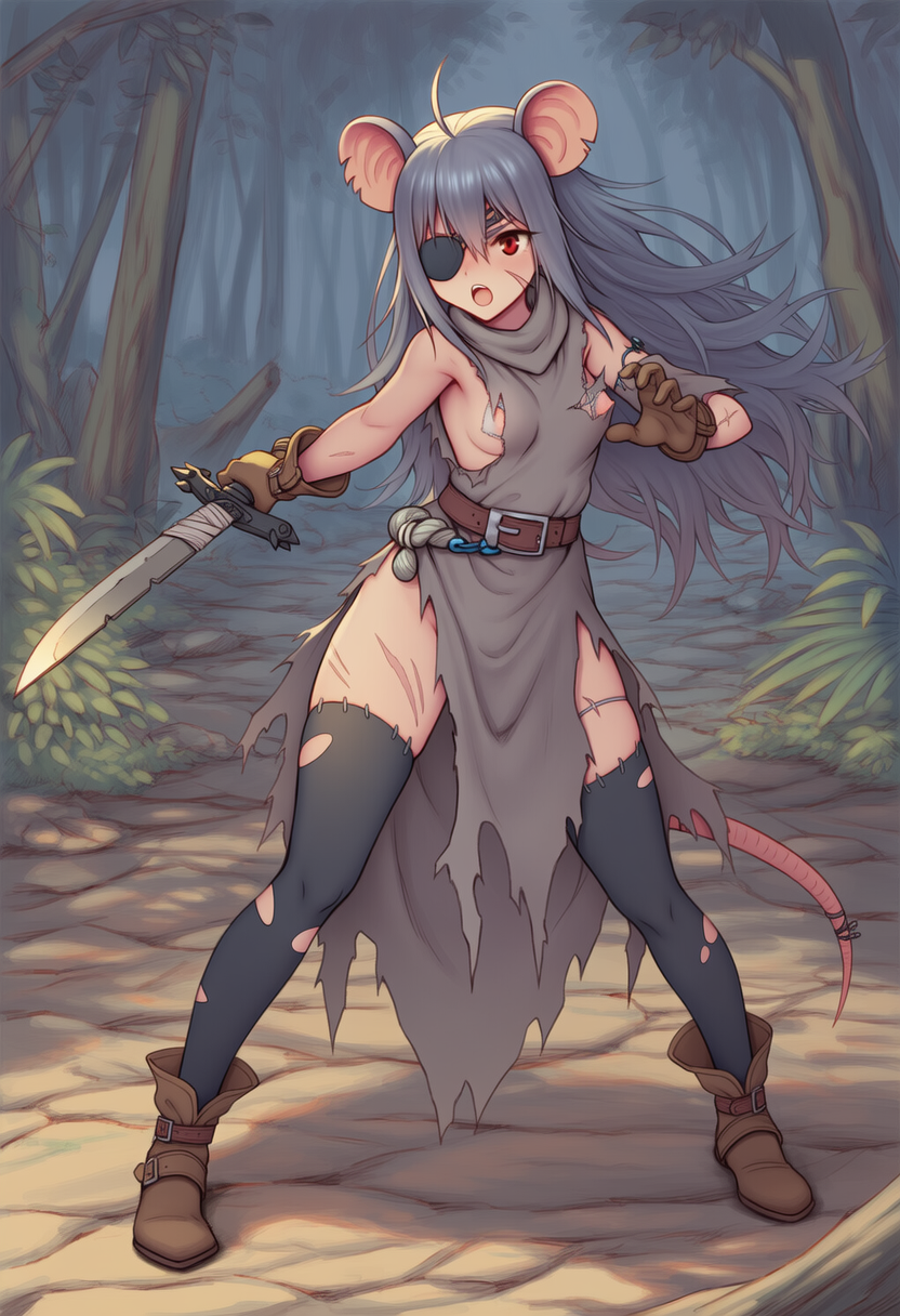 Thanks! I'll take a look at that checkpoint, but even just the prompts were informative (it never occurred to me to use "capelet", but really the color choice was more meaningful). I did take that phrase directly, as well as swapping "capelet" out with my usual "cloak" (I still prefer cloaks, but her posture with the spear was less aggressive and I specifically avoided a CN for this). I'm sure the checkpoint would make a radically difference, but it was still an interesting experiment by itself.