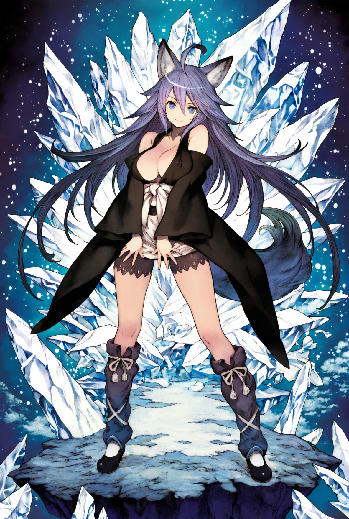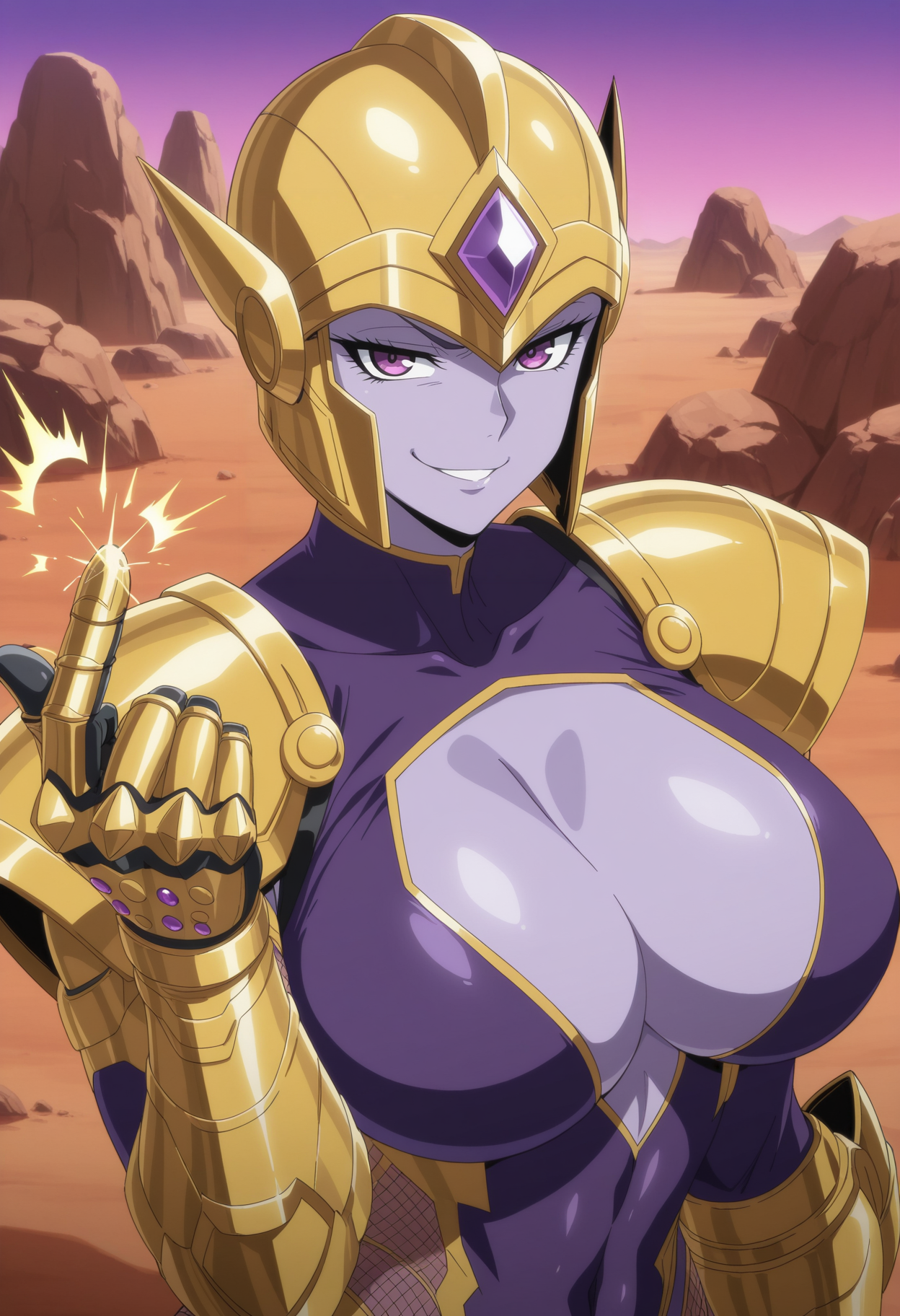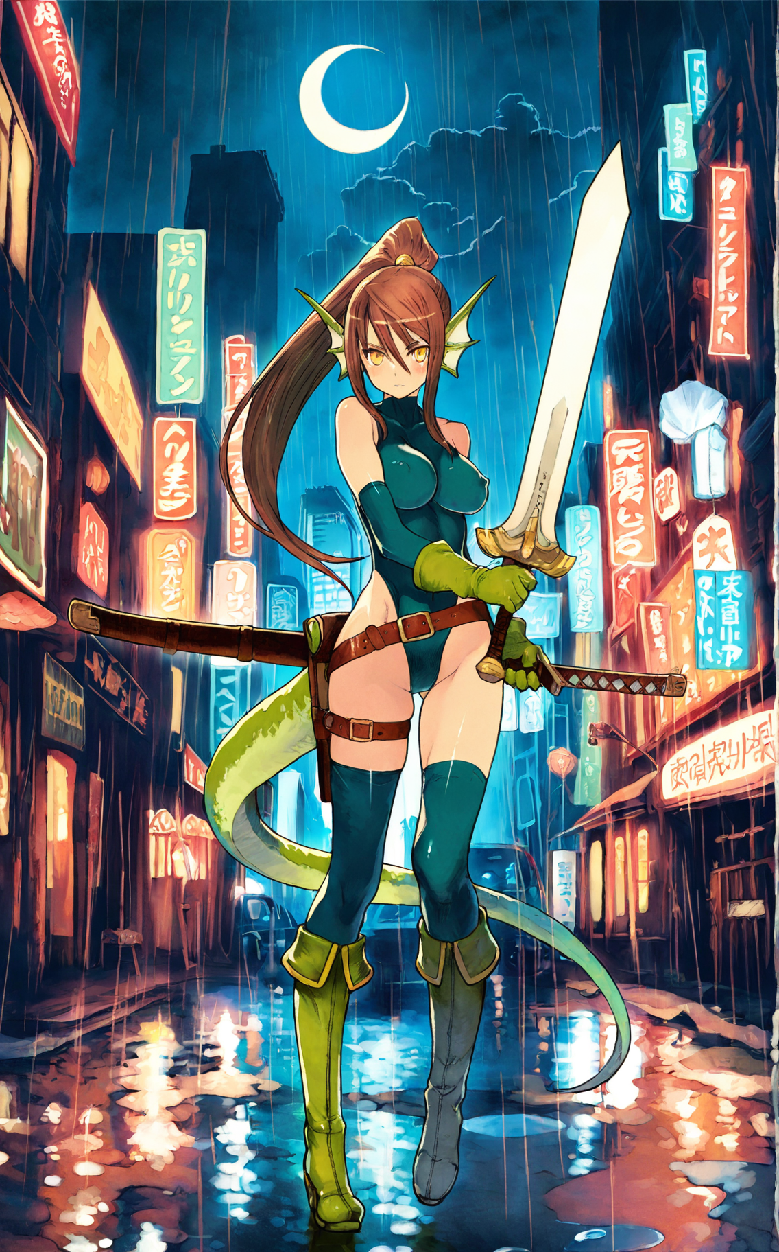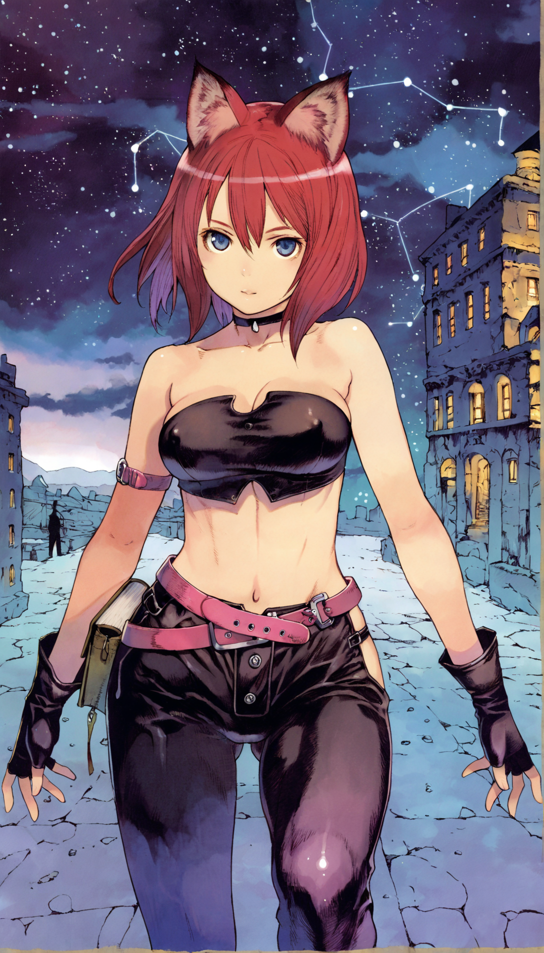 Thanks! I'll take a look at that checkpoint, but even just the prompts were informative (it never occurred to me to use "capelet", but really the color choice was more meaningful). I did take that phrase directly, as well as swapping "capelet" out with my usual "cloak" (I still prefer cloaks, but her posture with the spear was less aggressive and I specifically avoided a CN for this). I'm sure the checkpoint would make a radically difference, but it was still an interesting experiment by itself.