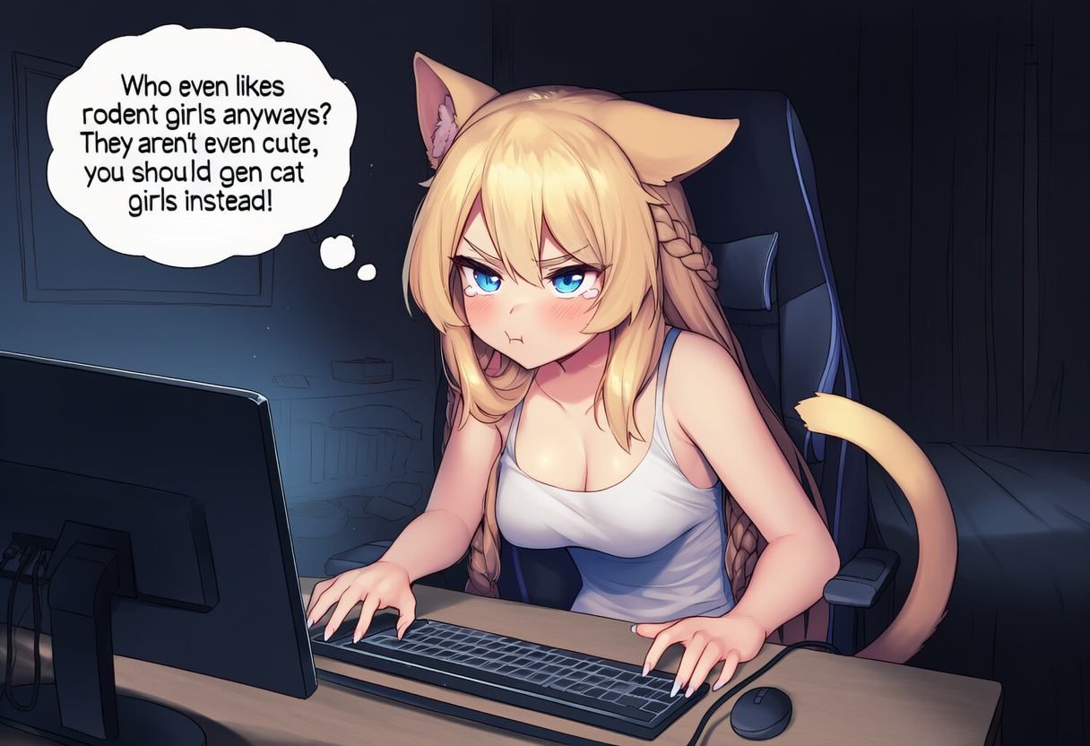 /edg/ is the home of 1girl posting. Here, we share AI-generated pics of sexy anime girls and discuss latest advancements in 1girl-related technology.