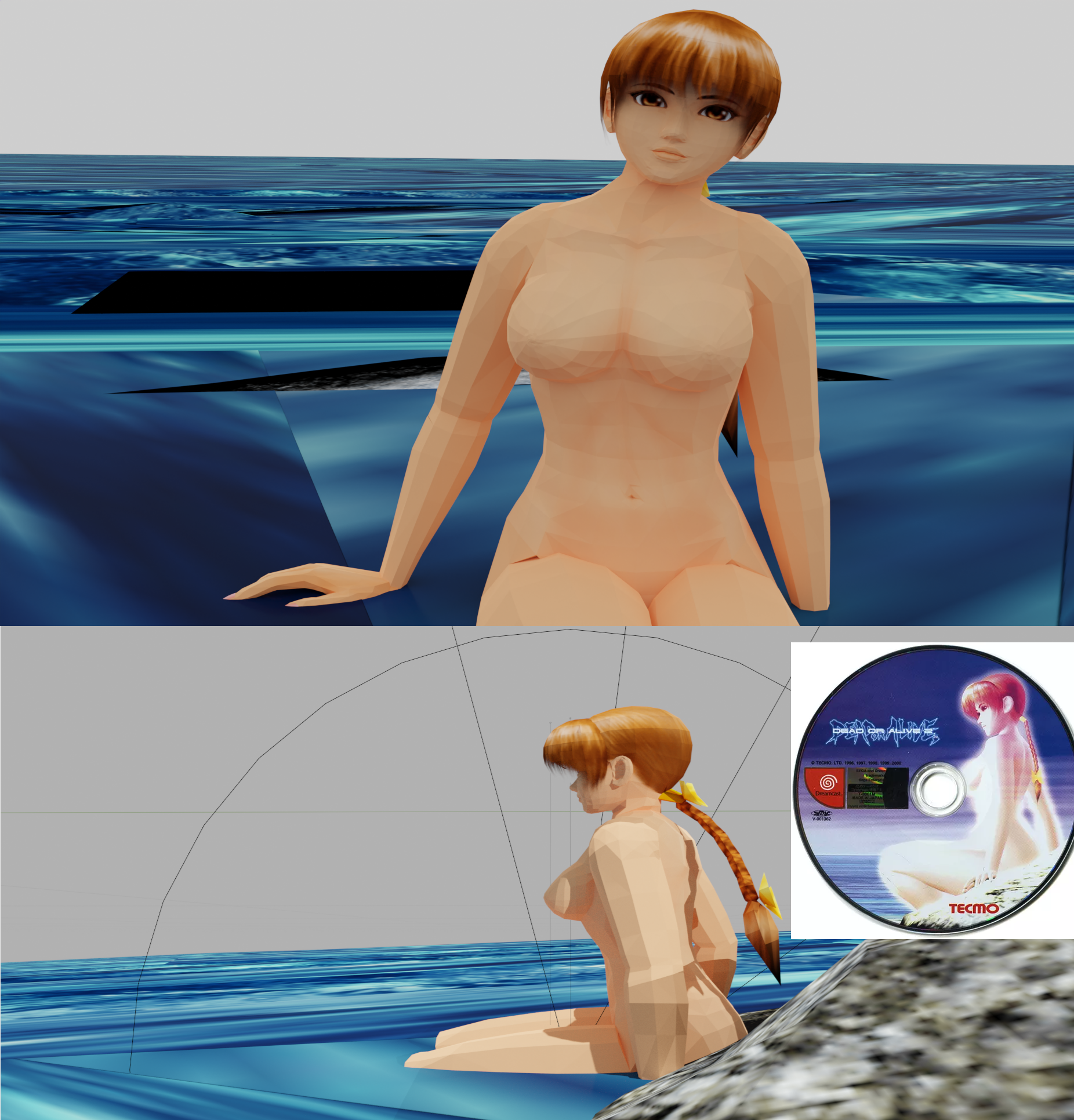 I recently came across a scene in DOA2 Hard*Core that felt quite familiar. it may actually be the direct source of the game’s iconic disc label design.I tried to extract the model into Blender to take screenshots, but I'm terrible with this program, so the screenshots aren't the best, but if anyone wants to try checking it out for themselveshttps://files.catbox.moe/ghx9je.blendSince I’ve seen some people sharing game-related content, I thought someone might be interested in this.