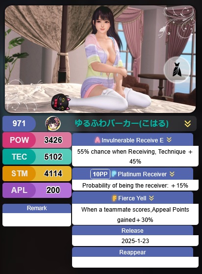 >>3034742Opened the extra Cheer Board slot for Megu by lv.40 and tried it out for fun again: