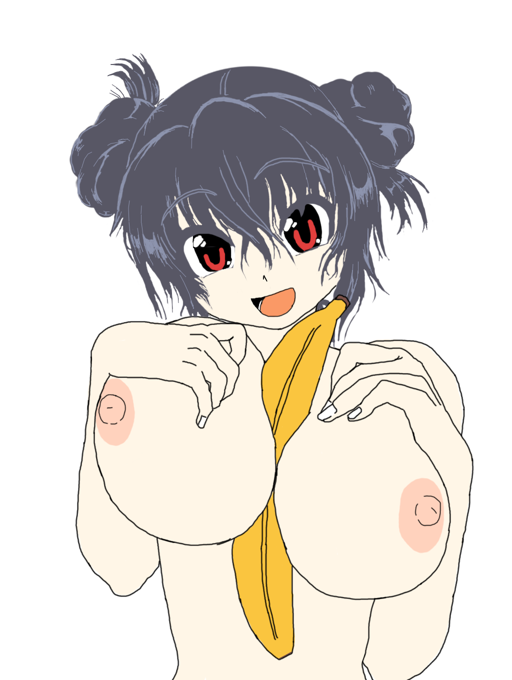 Request to generate an image of a girl with a banana sandwiched between her breasts.