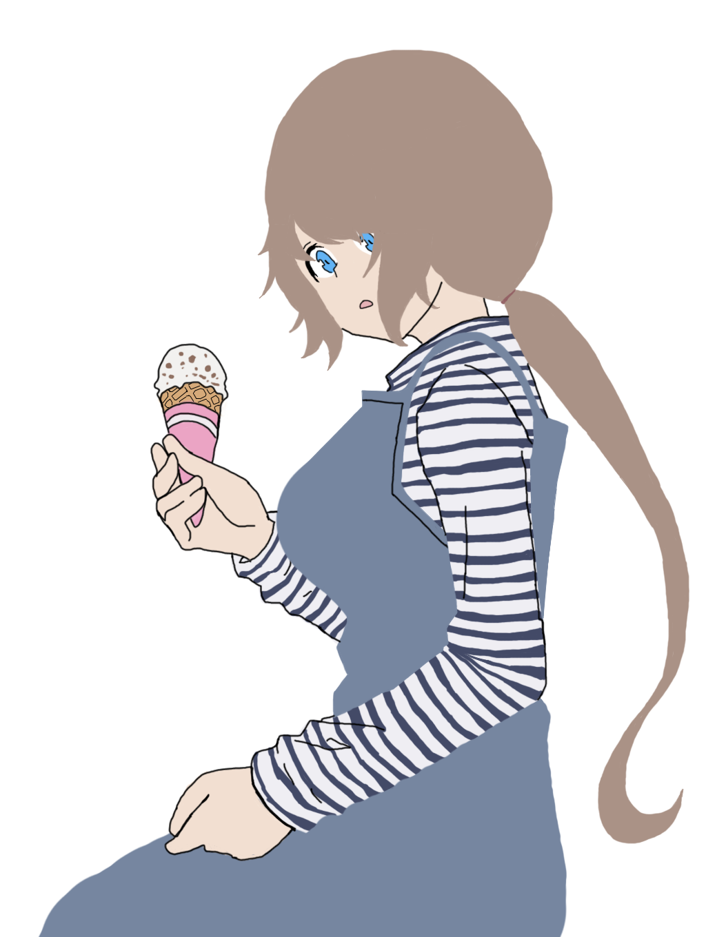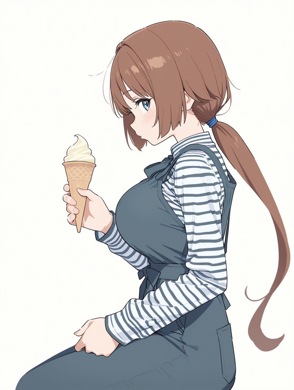 Request to generate an image of a girl sitting down and holding an ice cream.