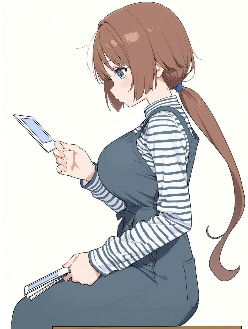 >>3058976Modifications: 1. Her eyes are looking straight ahead. 2. The clothing above her chest and back has been simplified. 3. She is now holding cards (please don't ask why). 4. Black lines have been added to her ponytail. 5. A chair has been added at the bottom.