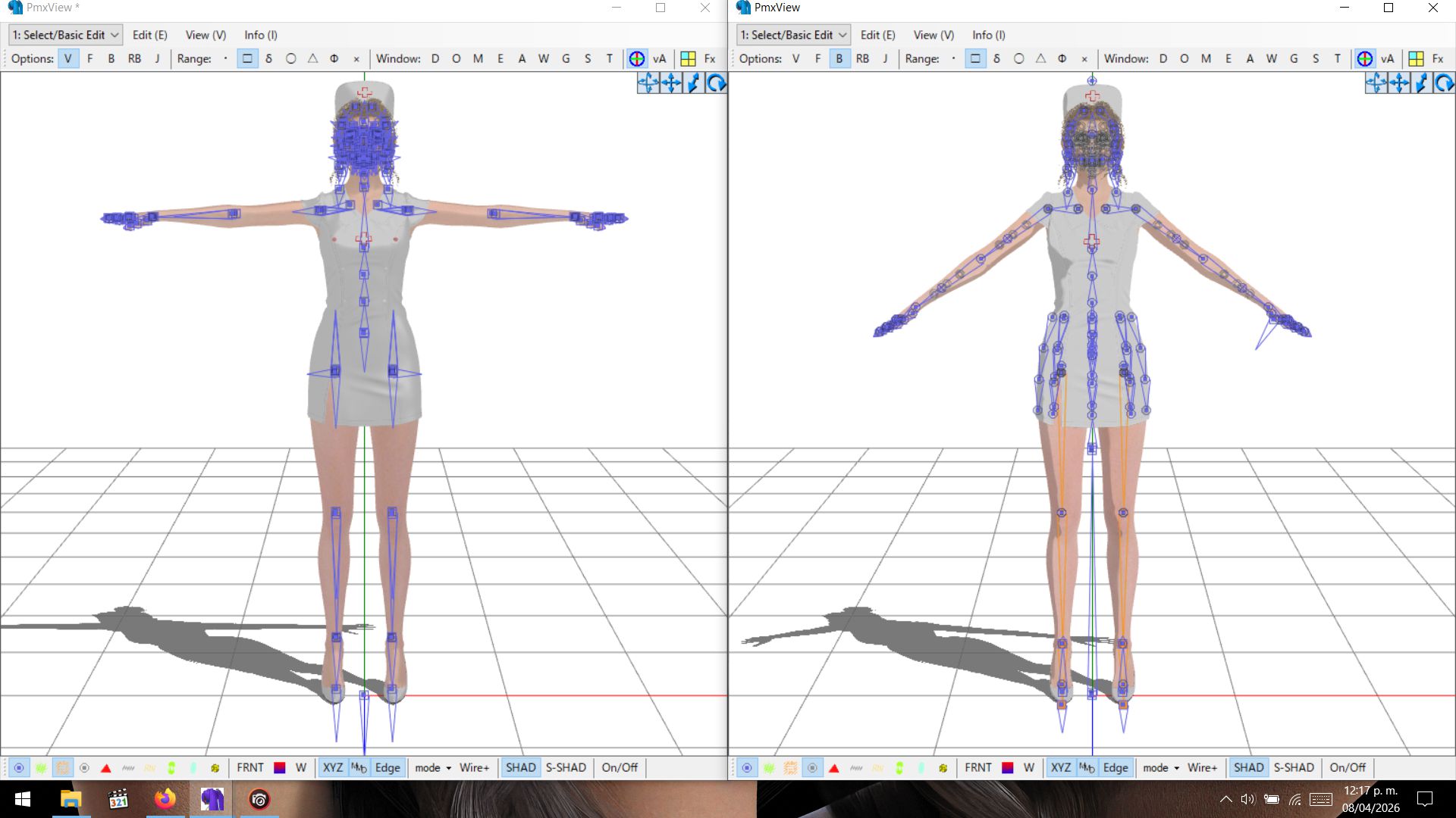 >>3067890You need to fuse the bones into a basic structure, guided by the weights of each bone and removing those that don't have a weight. Then reconnect them and rename them to PMX to preserve the original weights. Next, add the IKs, the half-bones, and everything else. Depending on the origin, you may also need to add the morphs using the facial bones. It's a somewhat lengthy process, but with practice, you can speed it up to just a few hours.
