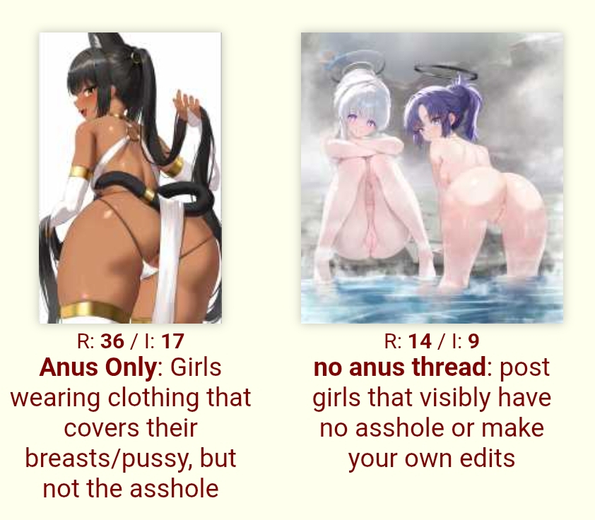 >>3052010>...anon. That IS what a human should look like. Humans have assholes.My argument is that with body parts not usually seen or meant to be seen, there is no "should". Yes, it looks a certain way in reality, but it might as well not. You would't care if some magical force made all human kidneys a different shape, and if you weren't so porn-brained as we all are, it would be the same with the asshole>So is the innards of the pussy but you literally have pussy spreading pics in this thread and you aren't complaining about those.You're right, the same goes for if the innards of the pussy. It doesn't matter if it's realistic or different, but in this case there's just no need to divert from realism because it's not disgusting. (btw do YOU complain about x-ray H-scenes where the womb gets filled with cum? definitely not what it looks like in reality)>Because you don't normally see the nostrils of a person...what?>Bro you don't need to cope. You just have a strange kink. We all know its weird, including yourself. Just accept it and move on. Logic will not win you this one.If you don't see assholes as a mere necessary evil, you're the one with the strange kink. If you had the power to create a more perfect reality and you didn't get rid of the need to digest and defacate, you're the one with the strange kink. This fantasy is as natural as imagining a world without aging or illness. If people were able to transcend their dirty and frail animal nature, they would, and that's what all major religions have been about for the last 2000 years