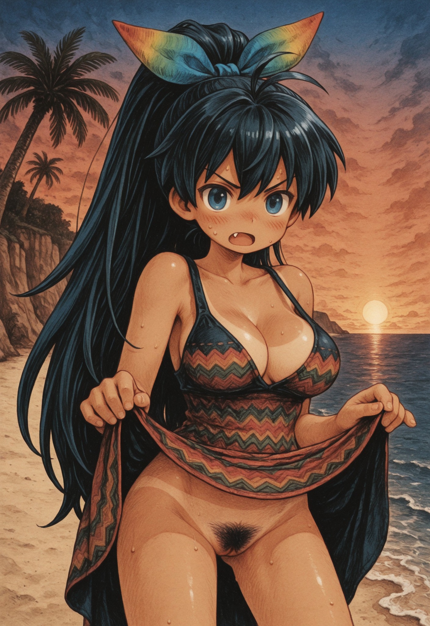 >>3051759It's alright. Slightly better knowledge than base illu 0.1, and outputs look cleaner without much effort. But it seems to struggle more with eyes, fingers, pussy and other small details. Hoping that's just a consequence of training at 512res. Characters' canon outfits require more prompting to get right. Style mixing feels unstable, reminds me of the complaints people had about NAI v4. Quality and aesthetic tags are biased towards /aco/, I'm talking DevilHS, Ganassa type of look, but not as bad as it was on Pony.Also, img2img breaks down completely and destroys the image if working above 2.3 megapixel (including hiresfix over 1.5x). Pic is 2.27mpix and you can see the beginnings of a diagonal cross-hatch pattern on flat areas.I wouldn't invest much effort into it before we get the full bake, and a clarification on the img2img issue.
