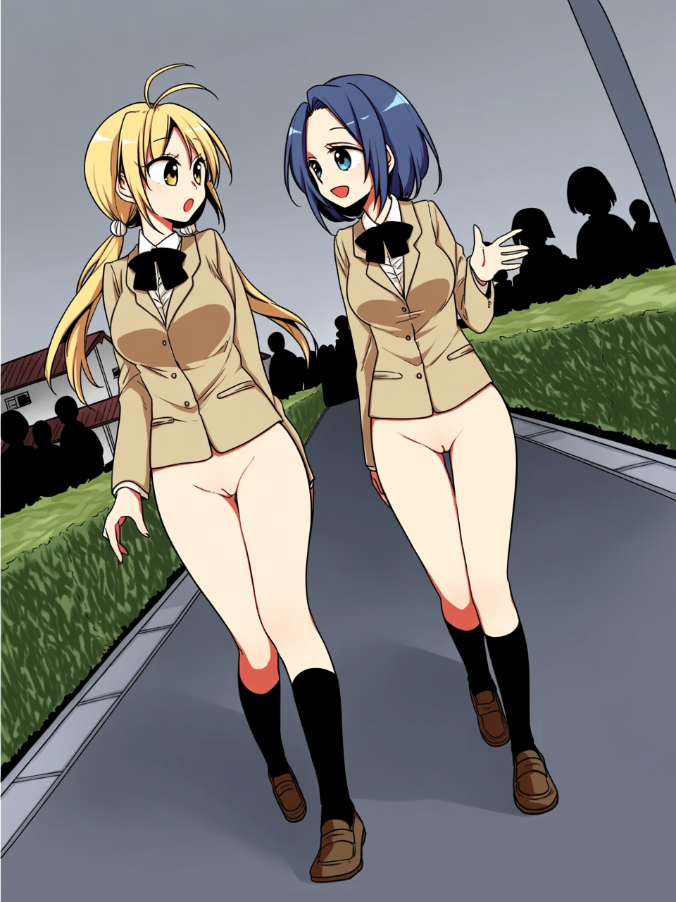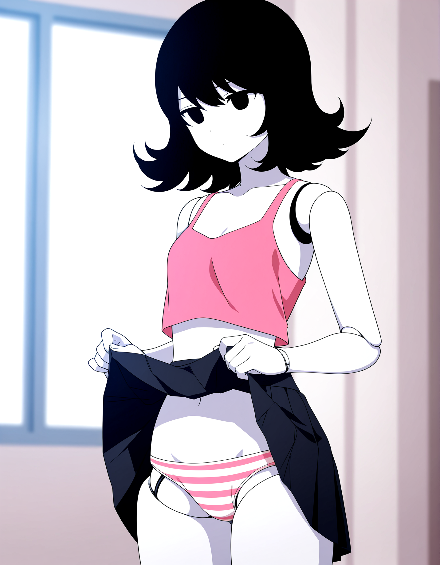 1girl, standing, pubic_hair_peek