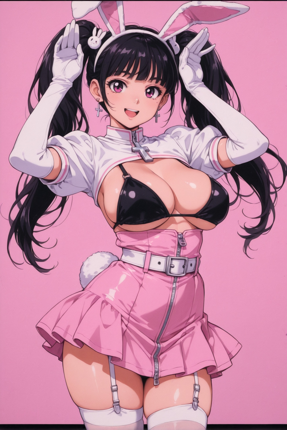 >>3057032Well, if you're who I think you are, you do seem to like film grain featured in some of my gens for a while now, so I don't mind shedding a little light on this. I took an old (apparently liked) gyaru bunny girl gen from last year, and using the CN for posing consistency: "default" style (with weights for traditional media, retro style), Retro Anisthetic LoRA, and Retro Sci-Fi 90's Arstyle LoRA, all at weight of one. Accordingly, even with the shared pose the distinctions are a lot less subtle, but both styles do lean on a grain effect. Unsurprisingly, the third style does lend itself to what it advertises, and I tend to leave it for more cyberpunk-minded gens than "busty elf bunnygirl." Both of them don't do great work with hands, but the CN is probably to blame too. Considering how quickly I whipped up the comparison, there are more errors than I'd like. >>3057091I'm a bunny suit purist, but that aside, bunny girl doing bunny pose is cute. >>3057164Part of wizardry is being chronically upset.