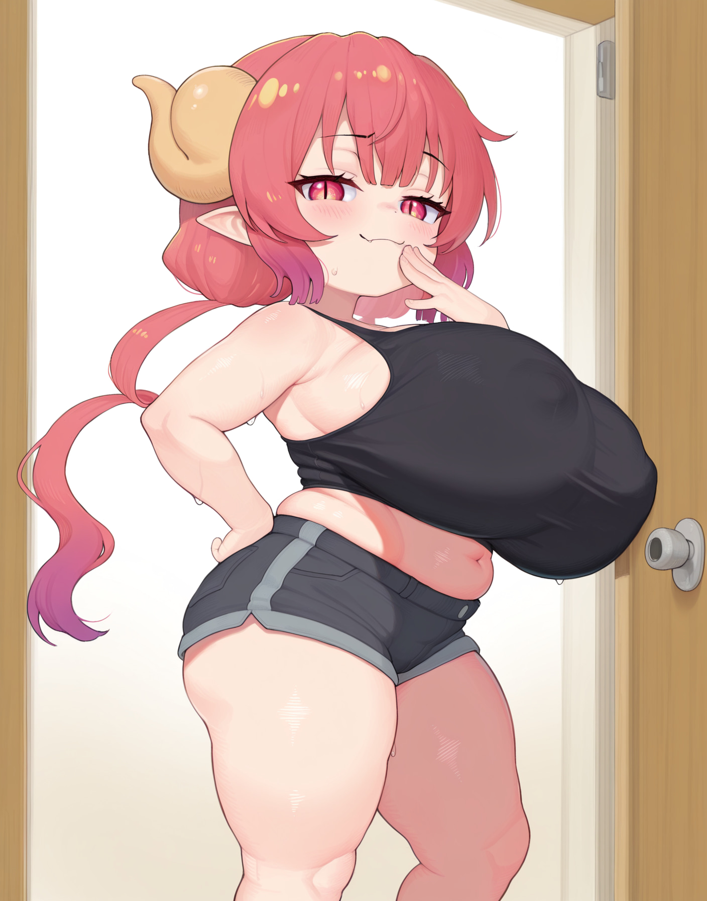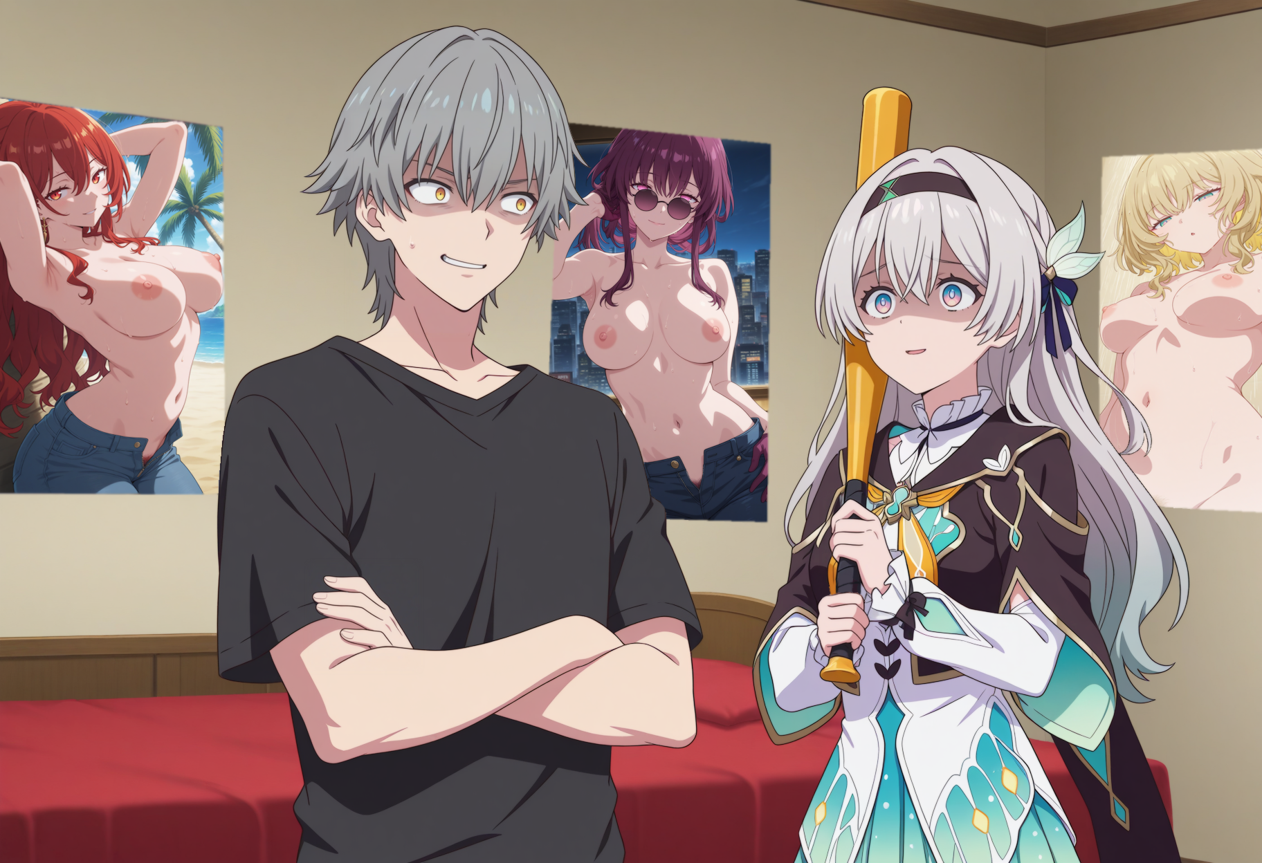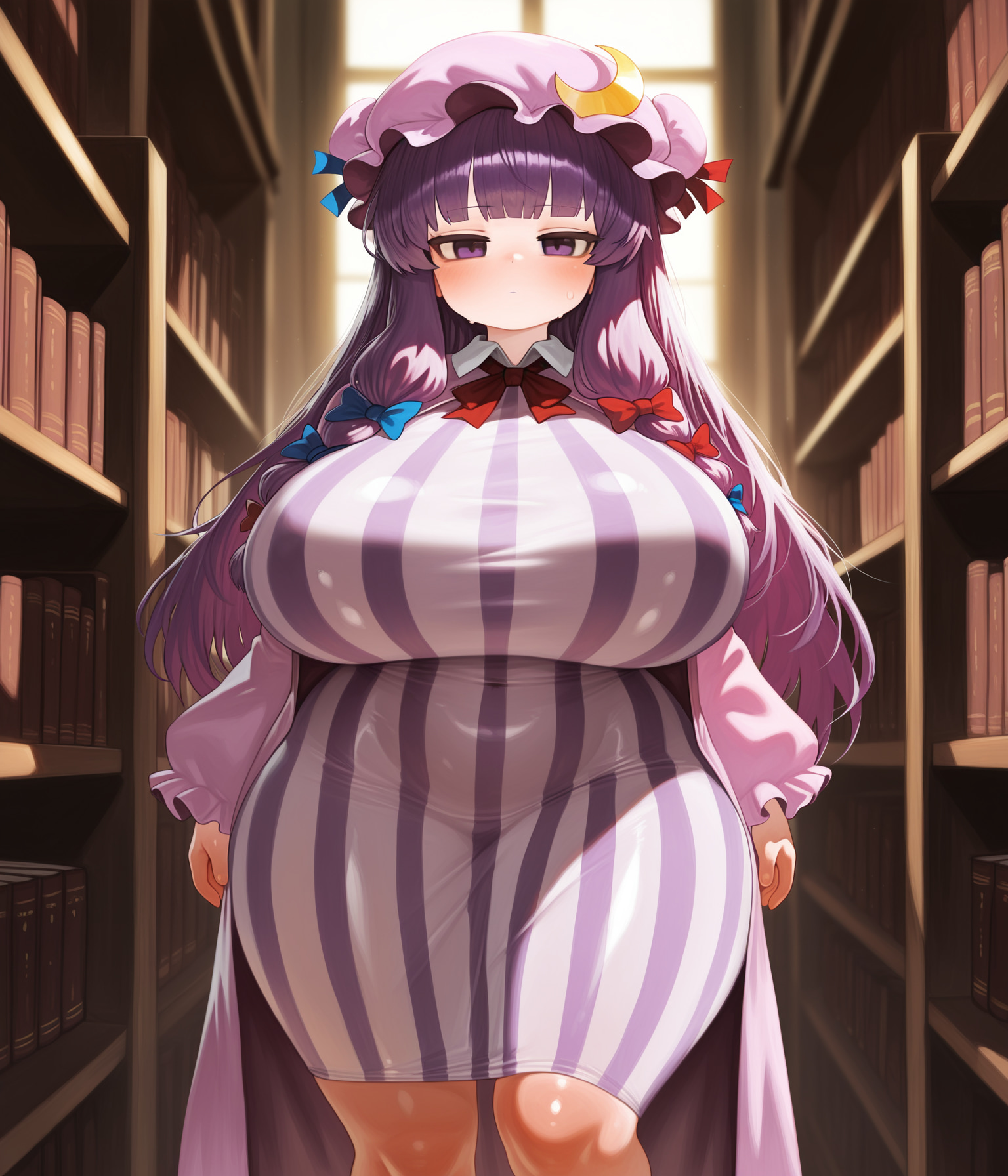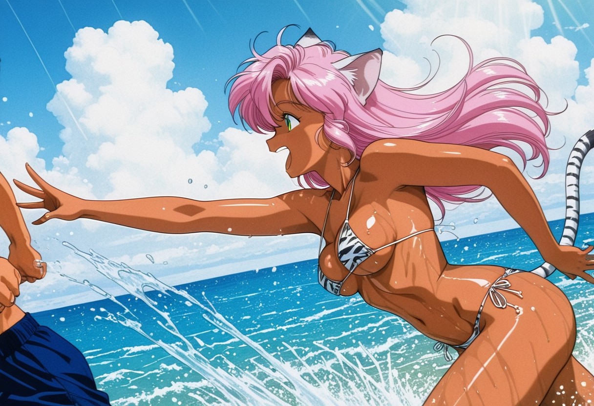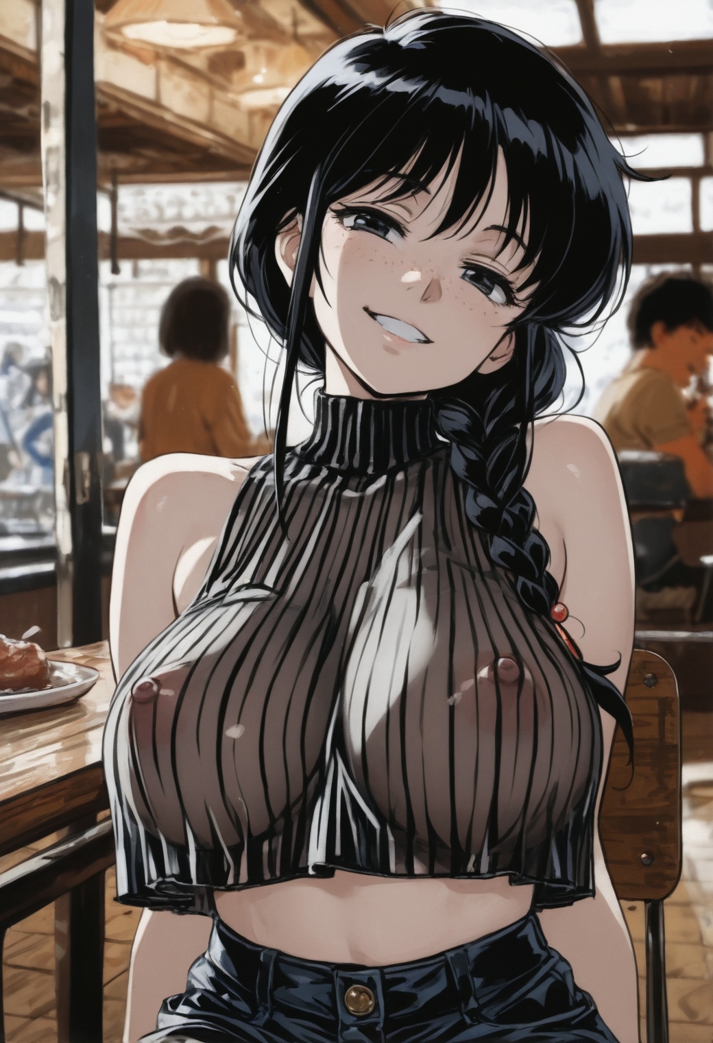 >>3058718You're not wrong. They wouldn't be bouncing either, even without a bra, but I didn't want to give up that effect. Her breasts ought to be flattened somewhat by her shirt (not to mention her erect nipples), but the Lora while convenient has limitations.Really, the "best" implementation of the idea would be a clearly visible but mostly transparent layer of clothing containing her enormous hugs and deforming their shape. But it's just for fun rather than accuracy anyway.
