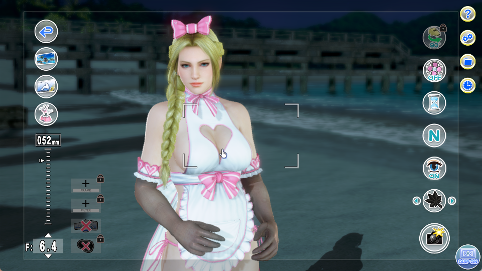 A question.So you can press a hotkey to hide the UI when taking photos if you have mods installed.But it also hides any frames you have such as the lipstick kiss mark.Is there a way to hide only the UI stuff or hide the Disp button after using it to hide the UI?Like pressing the Disp to hide the UI and then a hotkey to remove the Disp so I keep the frame in view.At the moment I have to open the photos and splice them together to remove the Disp, and I've just been dealing with it.
