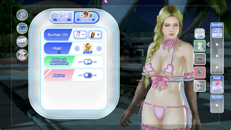 >Nanami's face>Nyotengu's mole>Elise's costume>Reika's alternate hairstyle