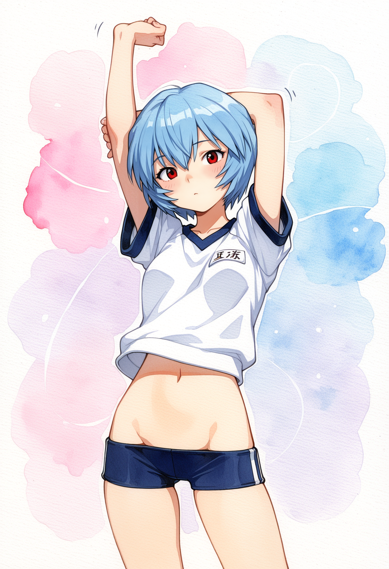 >>3065194Navel-baring gym uniform with extremely low cut gym shorts like this one