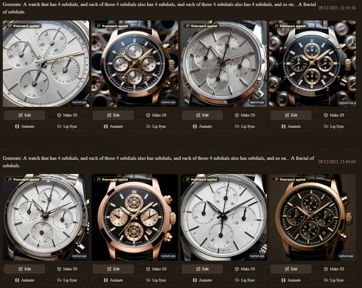 >>18621830Others failed miserably. That's why i rarely use it. The last time i gave it a photo of a watch and asked it to change the strap it started to change the shape of the watch. It couldn't resist. Even after explicitly being asked to change only the strap and leave everything else as it is it still wouldn't stop changing the case and time and proportions and whatnot.