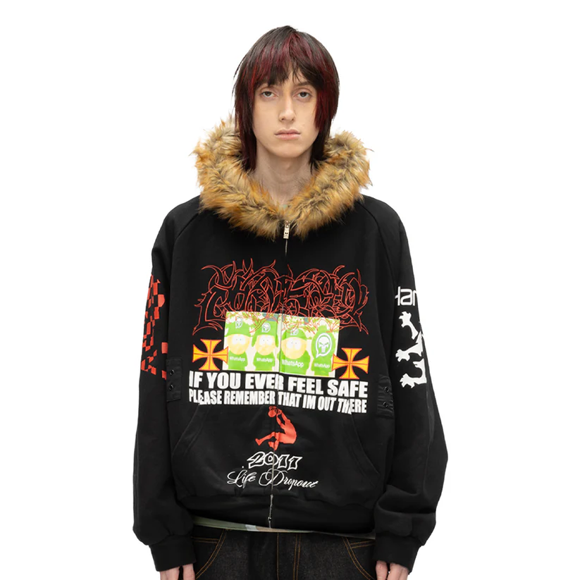 the hoodie is very likely inspired by bladee's cold visions album merch. it wouldnt look good at any age as its safe edgy uninspired slop. i looked at other stuff the brand is selling and its clearly lifting from rappers like sematary, yabujin etc who came up ~4ish years ago and arab funny memes from around the same time. do not buy it.