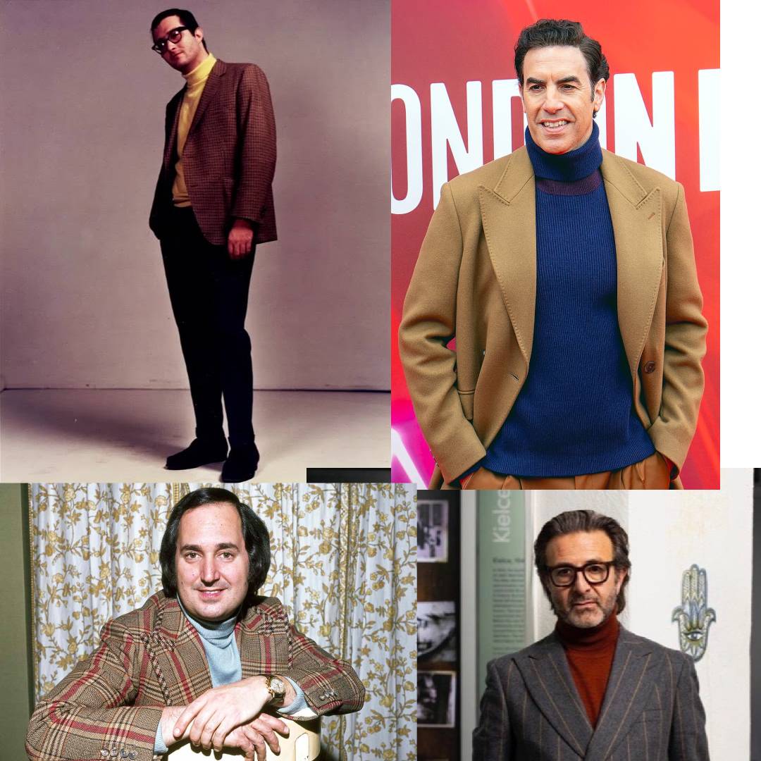 Why doesn't the turtleneck/blazer combination work with Jewish features? I can't put my finger on why. It just looks off and even somewhat unsettling.