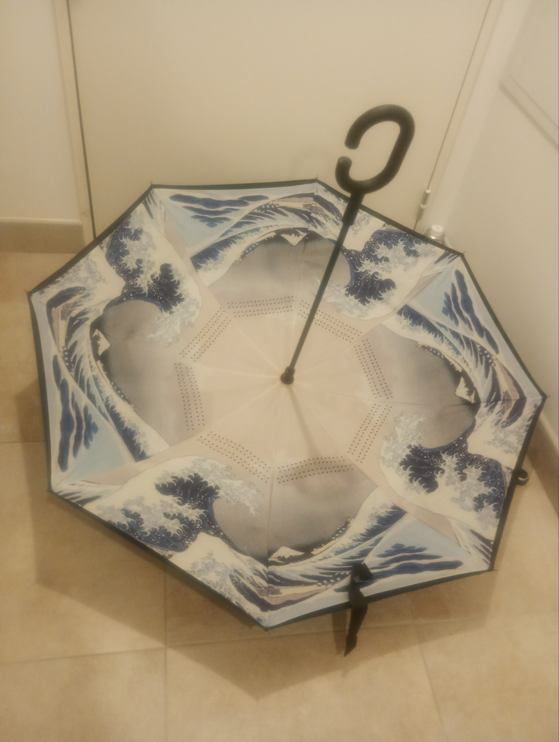 got this one with a pattern on the inside and that folds towards the toponly bad thing about it is the lack of a normal hook, don't know why they made this impractical thing that makes it harder to hang it on the wrist/forearm