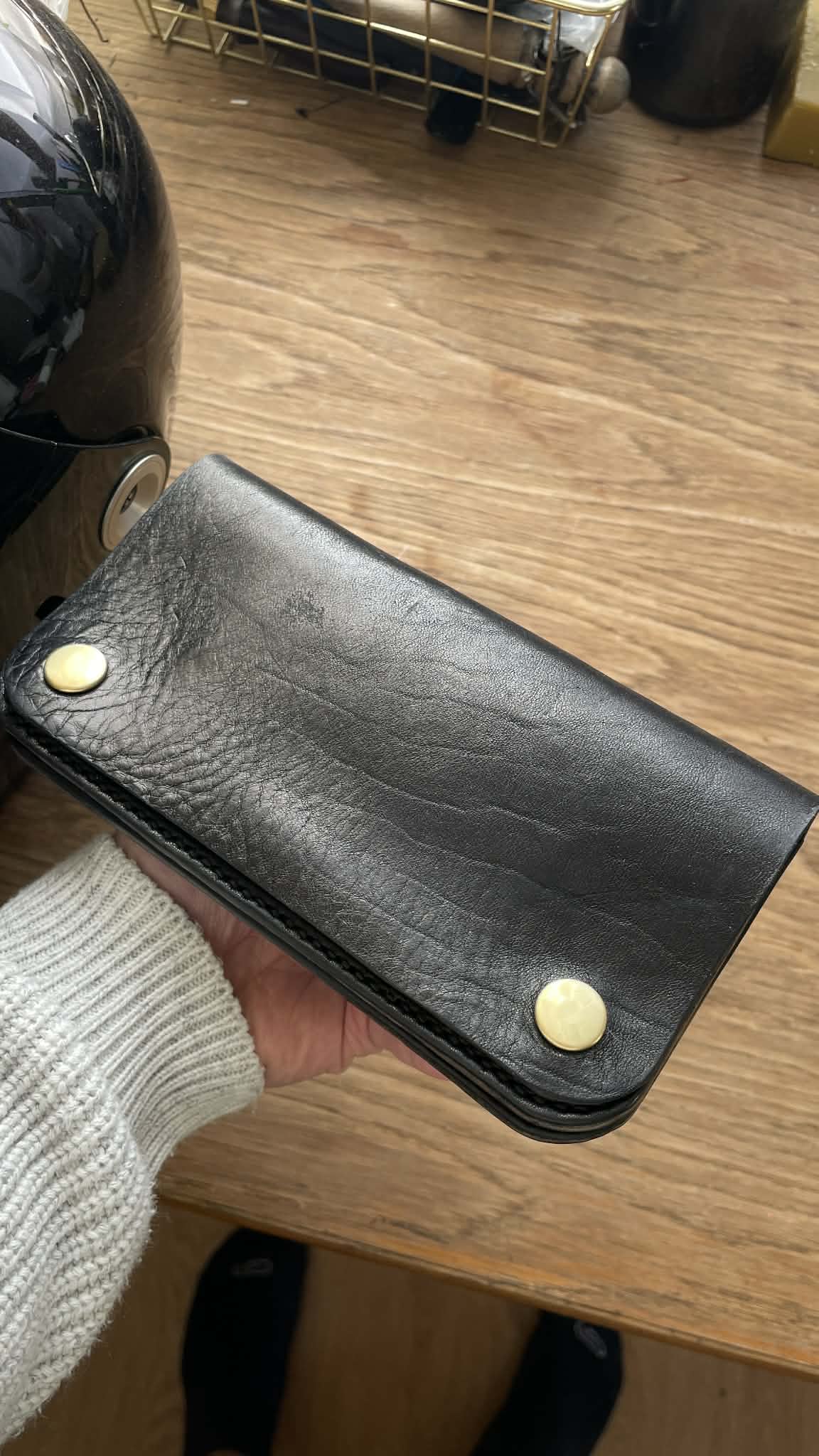 >>18688582its horween chromexcel + ykk excella zip + brass snaps fully saddlestitched