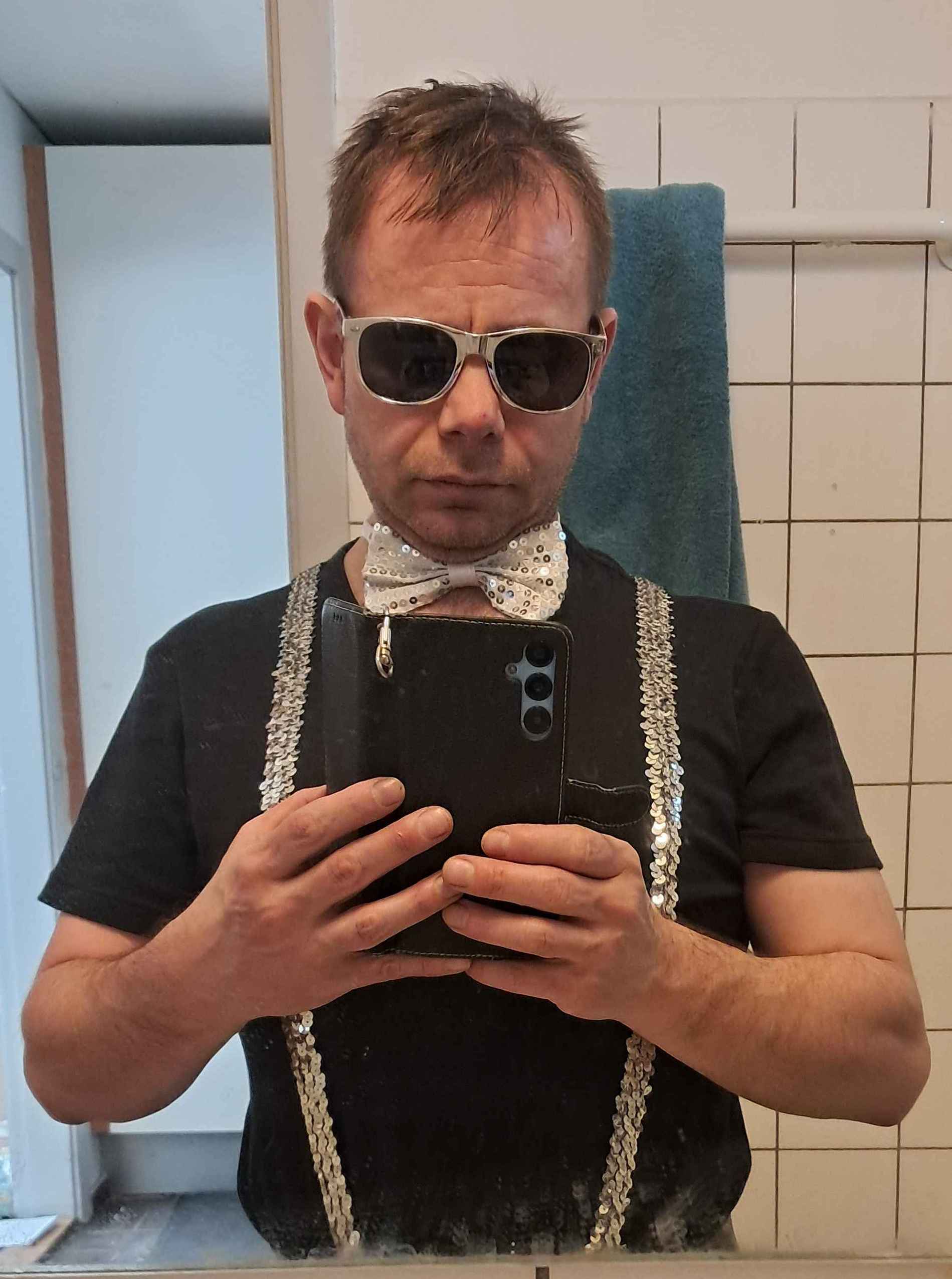 >>18677944the only thing i dont like is that you didnt match the sunglasses, they arent the same texture as the bowtie and suspenders.