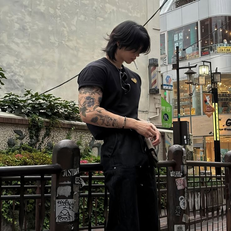 This is all it takes as a fit guy. A couple tatts, a cool hairstyle, all black. Wider pants, tighter top, whatever accessories you want. Just look like a jrpg character