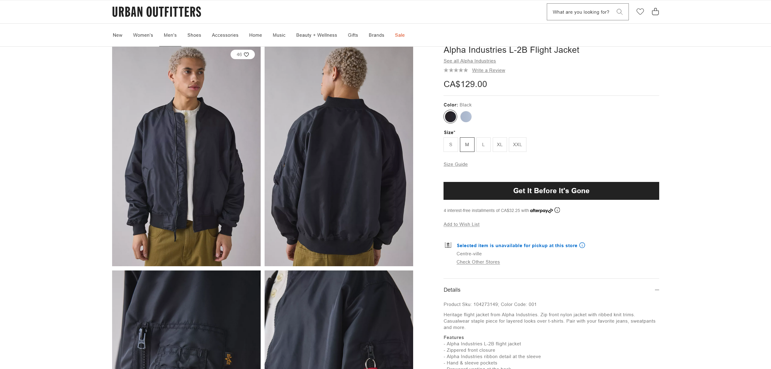 >>18667465https://www.urbanoutfitters.com/en-ca/shop/alpha-industries-l-2b-flight-jacket$129