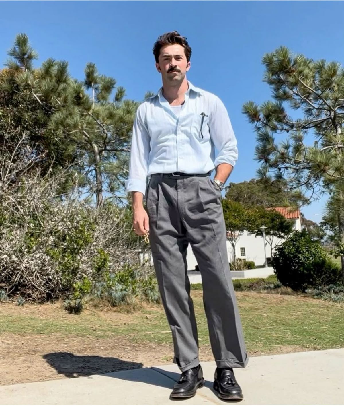 >>18563420It would be less embarrassing if he wore those clothes during the right season. Nobody wears a three piece suit AND an overcoat when it's not winter. It clearly doesn't seem like it's winter where he is, going by the guy dressed in just a polo shirt and jeans. That's why it looks like a larpy costume. If he wore that in December, nobody would have cared as much. Dress according to your environment and climate if you don't want to look like a cosplaying retard.https://youtu.be/n_t9RGUGfQ4?t=12