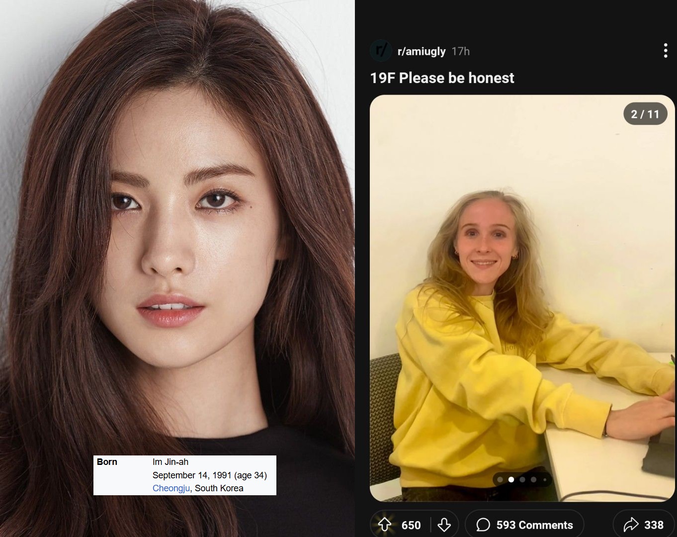 >>18573819>see? i posted an image of an attractive person of the race I like and an unattractive person of the race I dislike! this means i'm 100% right and correctsure thing buddy