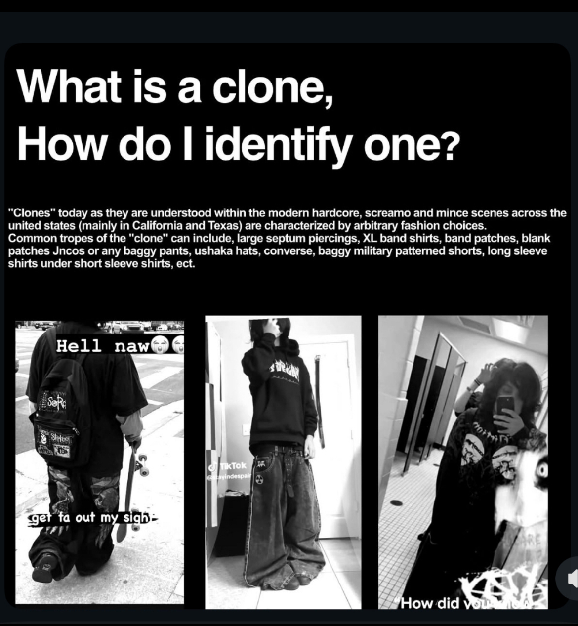 >>18574747This style looks awful on anyone over 18. The grown-up equivalent is women that wear grown-up music-inspired brands like Allsaints.