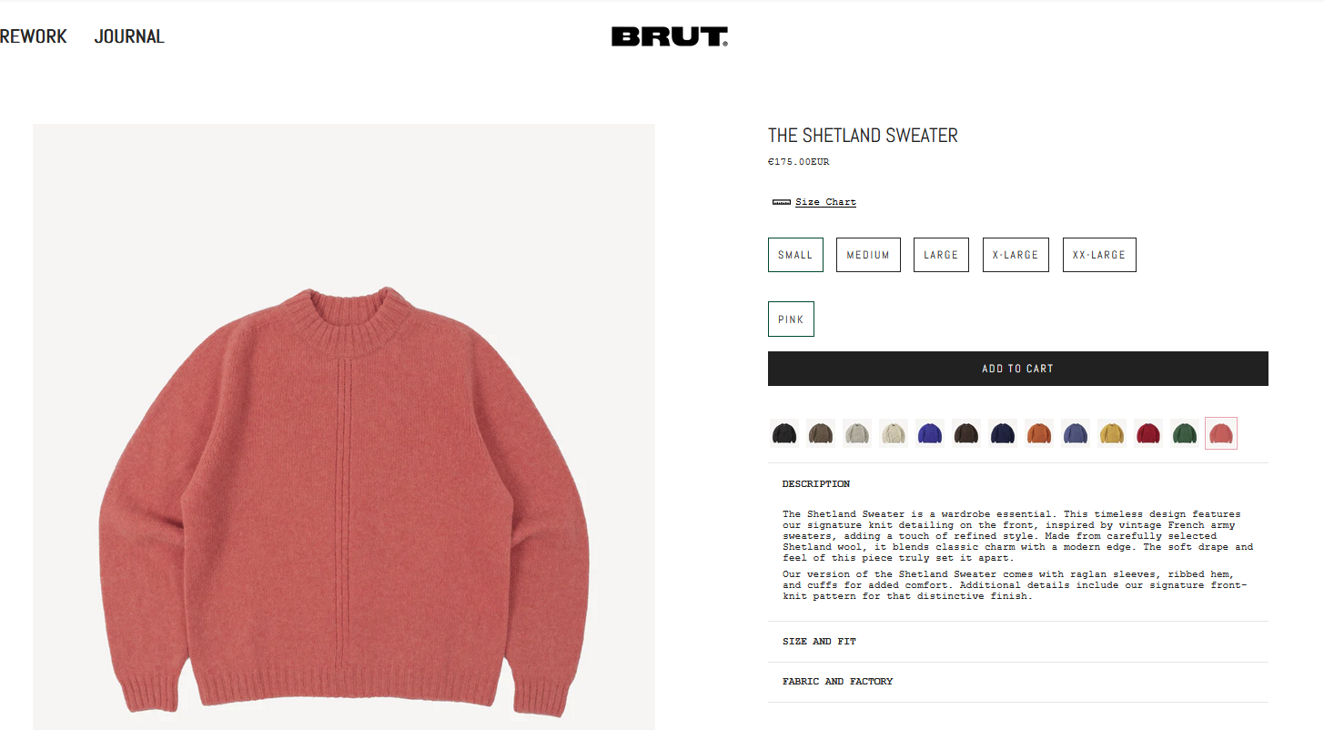 Brut Archives used to have the majority of their original products made in France or in Europe or even by specialist manufacturers in South Korea. I have some of their older original shirts and they're really nice. But now they're charging the same prices for shit made in China by some random no name factory. If it was made by some kind of Chinese wool artisan with a history of jumper making I'd be fine with that, but I doubt it is.