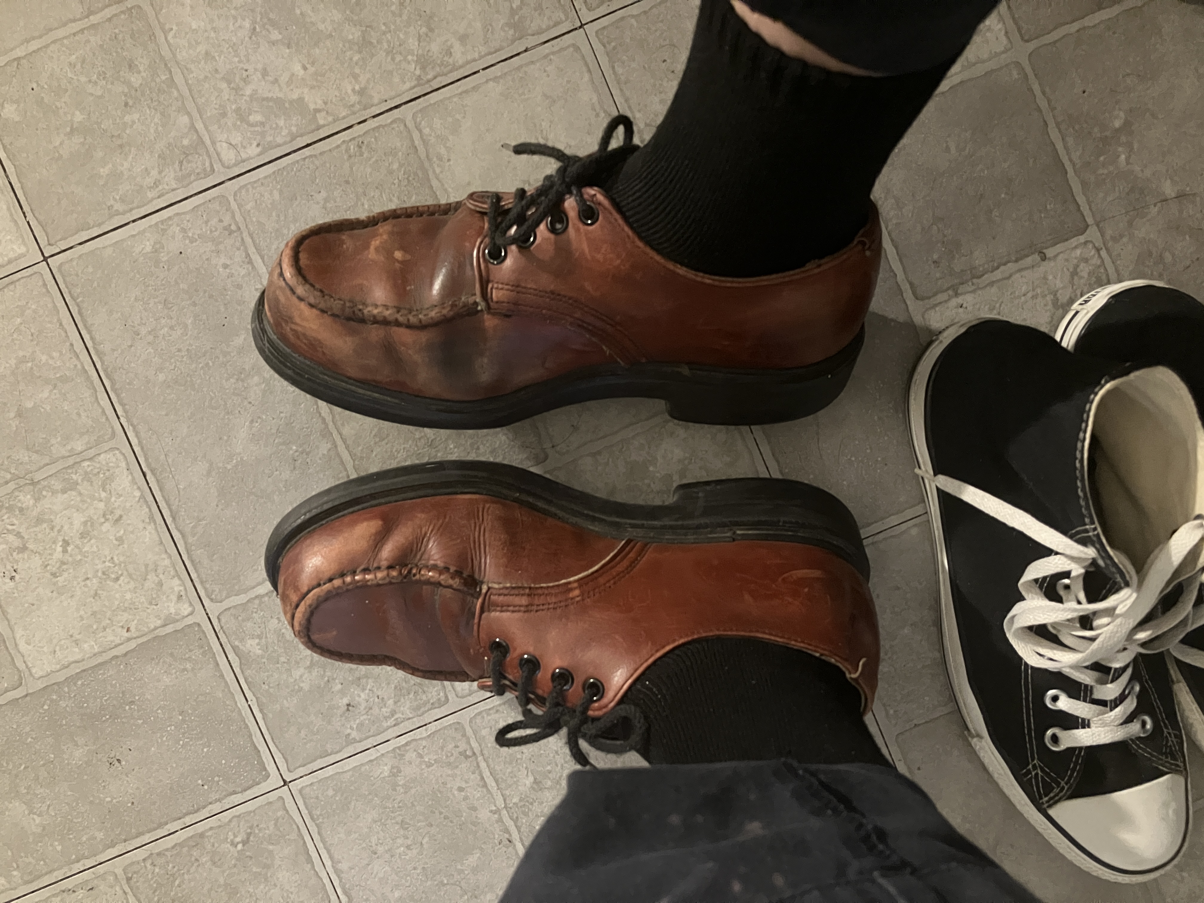 Do you even thrift, bro? Some beat-up Red Wing oxfords.